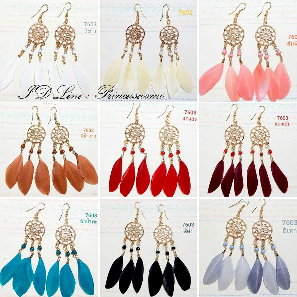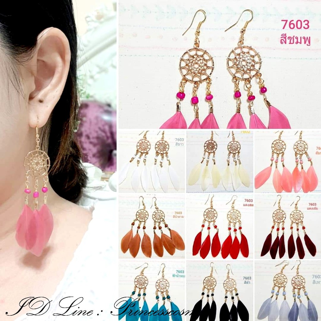 🦋ต่างหูขนนกมีเจาะ/หนีบสไตล์วินเทจโบฮีเมียนขนนกน่ารักๆ🦋