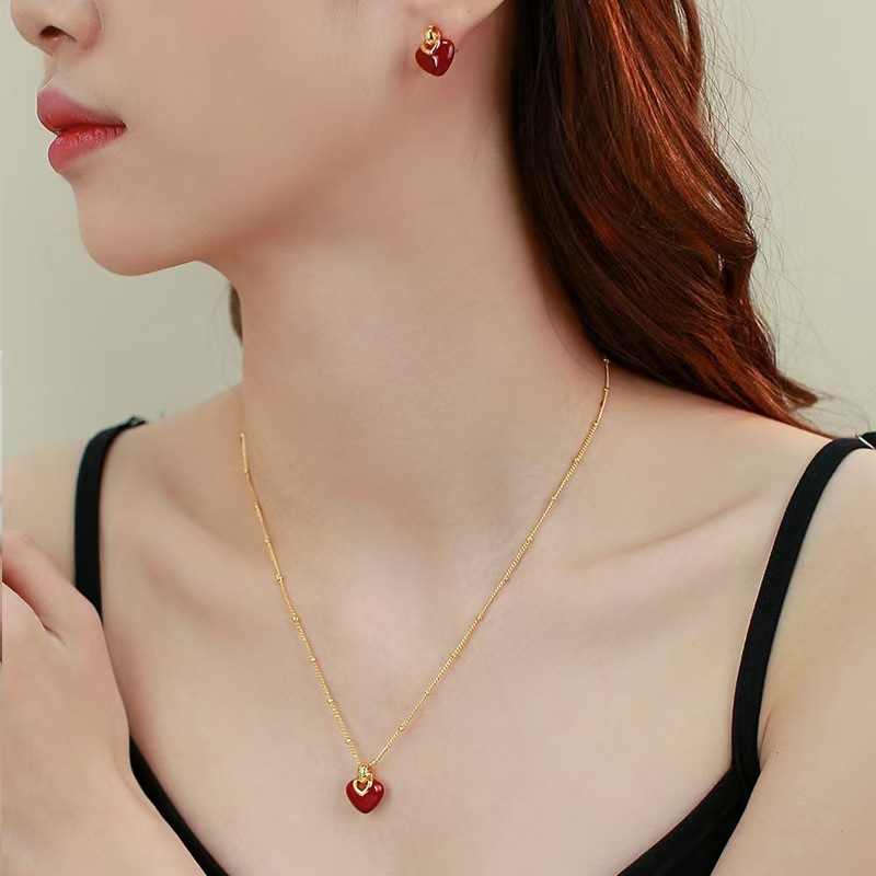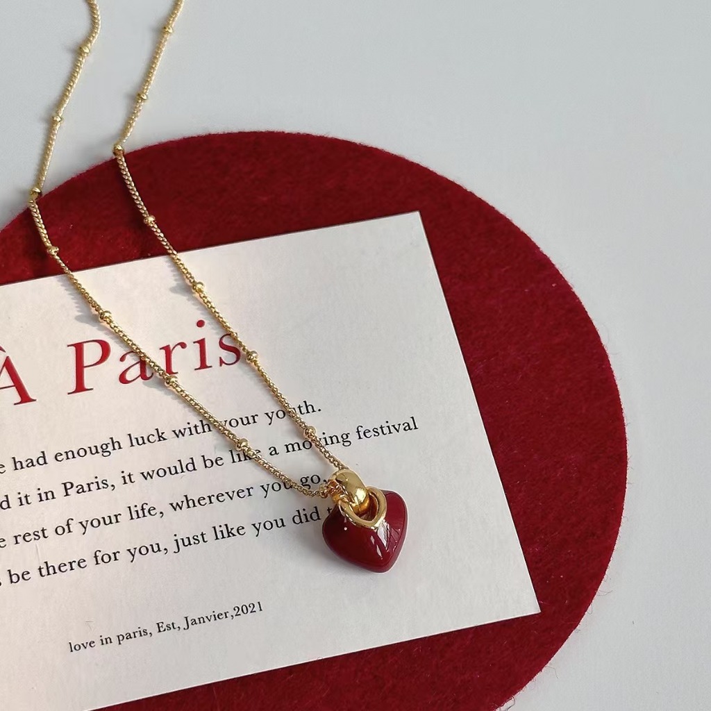 สร้อยคอยาวหยดน้ำหนักทรงหัวใจสีแดง ออกแบบอย่างเรียบง่าย เหมาะสำหรับเทศกาลคริสต์มาส