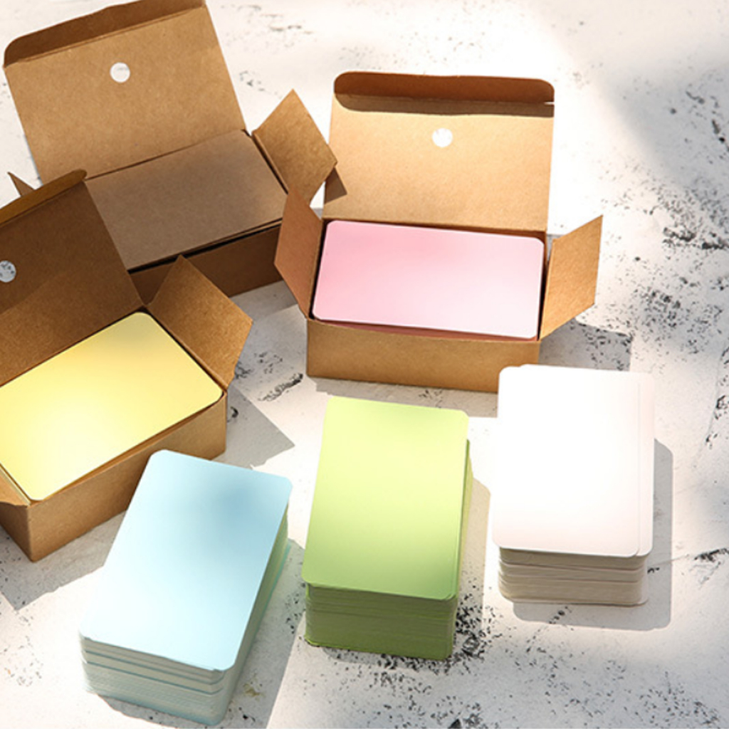 การ์ดขนาดเล็ก ขนาด : 8.9 x 2.5 ซม มุมโค้งมน 100 แผ่น/กล่อง ป้ายสินค้า การ์ดสี นามบัตร บัตรสี แผ่นการ์ด