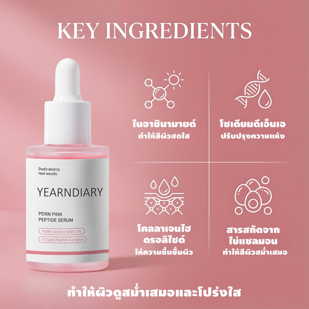 【ซื้อ 1 ฟรี 1⚡】YEARNDIARY PDRN Pink Peptide Essence | ปรับปรุงความแห้งกร้าน สีผิวไม่สม่ําเสมอ | สําหรับผิวกระจ่างใสเรืองแสง | เซรั่ม 30มล