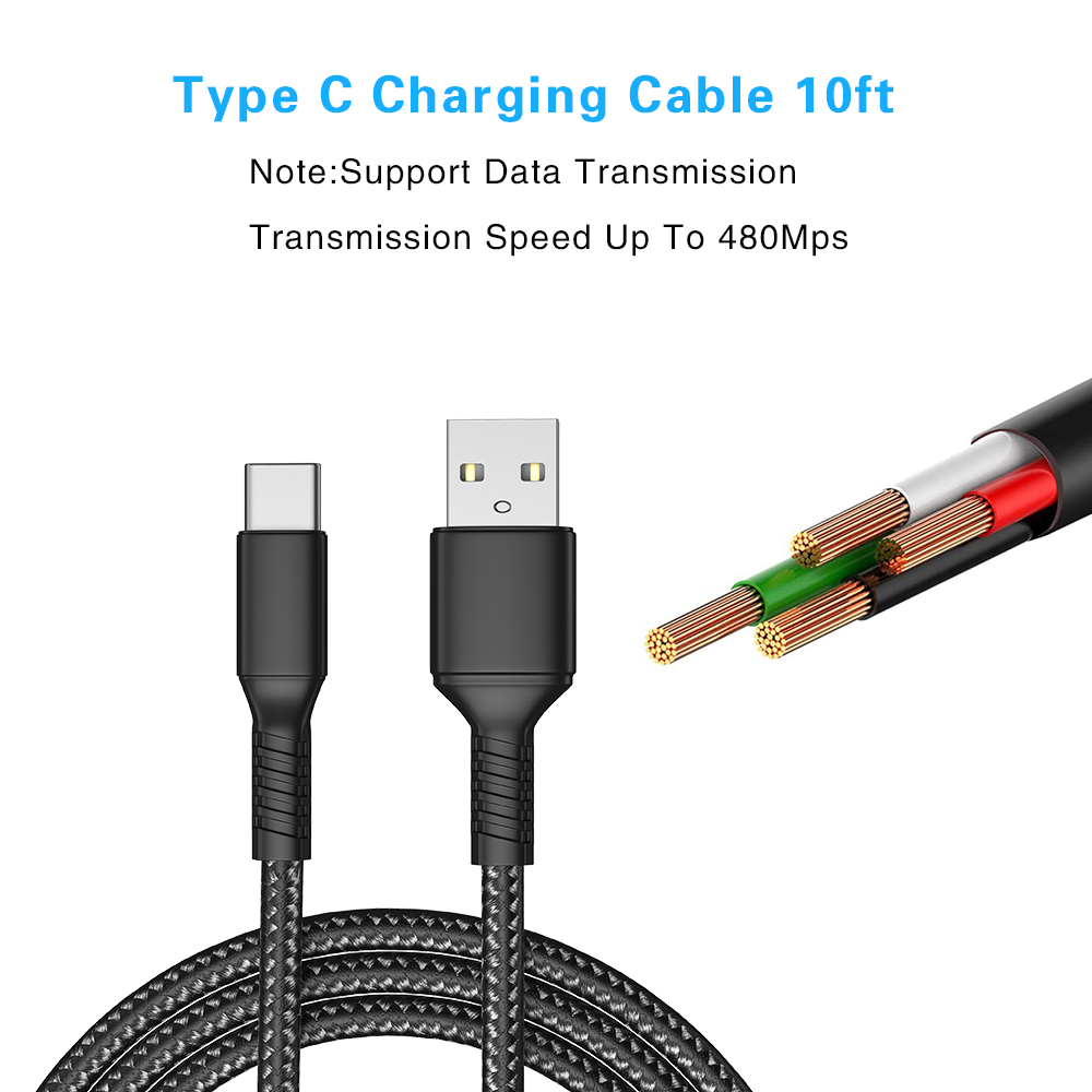 สายชาร์จ OIVO 3 ม. สําหรับจอย PS5 DualSense, ไนลอน ความเร็วสูง ซิงค์ข้อมูล ยาวพิเศษ สายชาร์จเร็ว USB Type-C สําหรับ PS5, Xbox Series X/S, จอยโปรสวิตช์