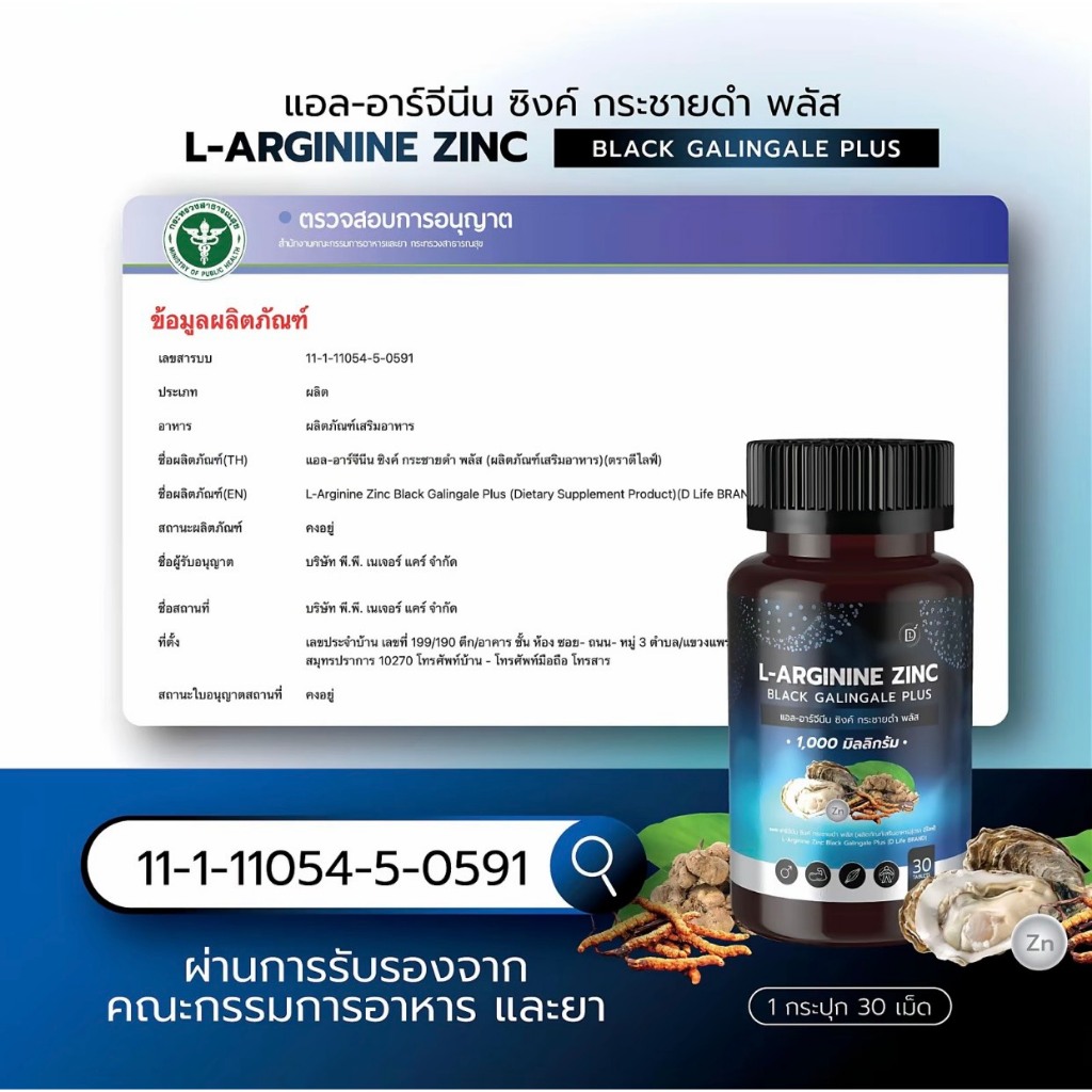 แอล-อาร์จีนีน ซิงค์ กระชายดำ พลัส L-Arginine Zinc Black Galingale Plus 1000MG
