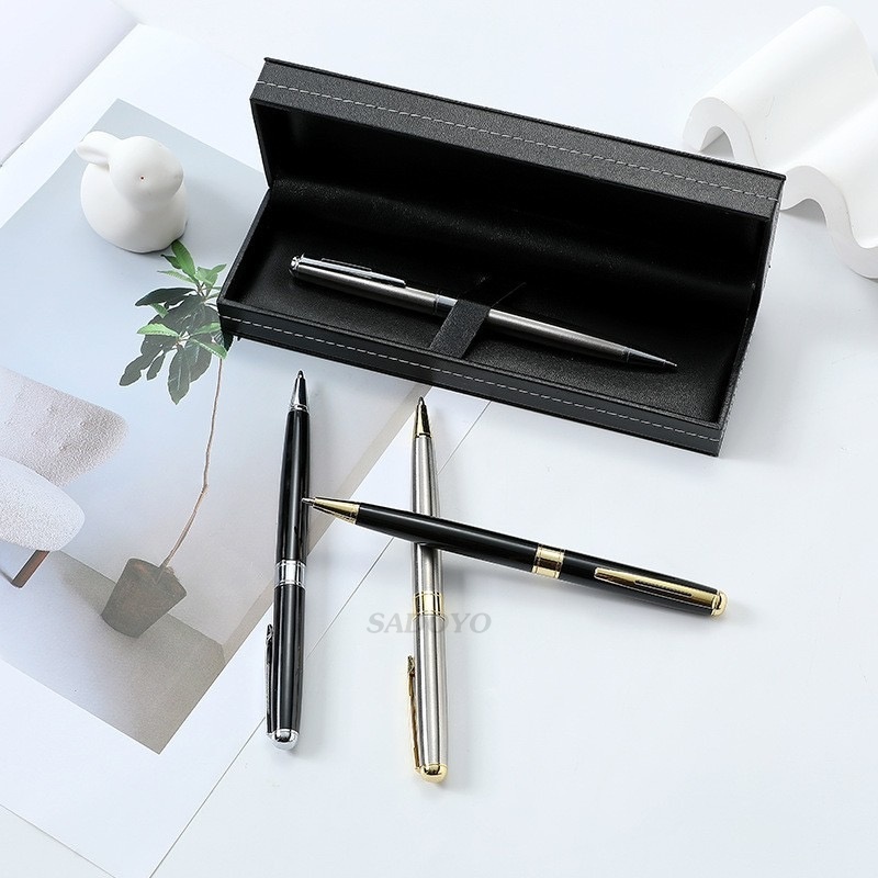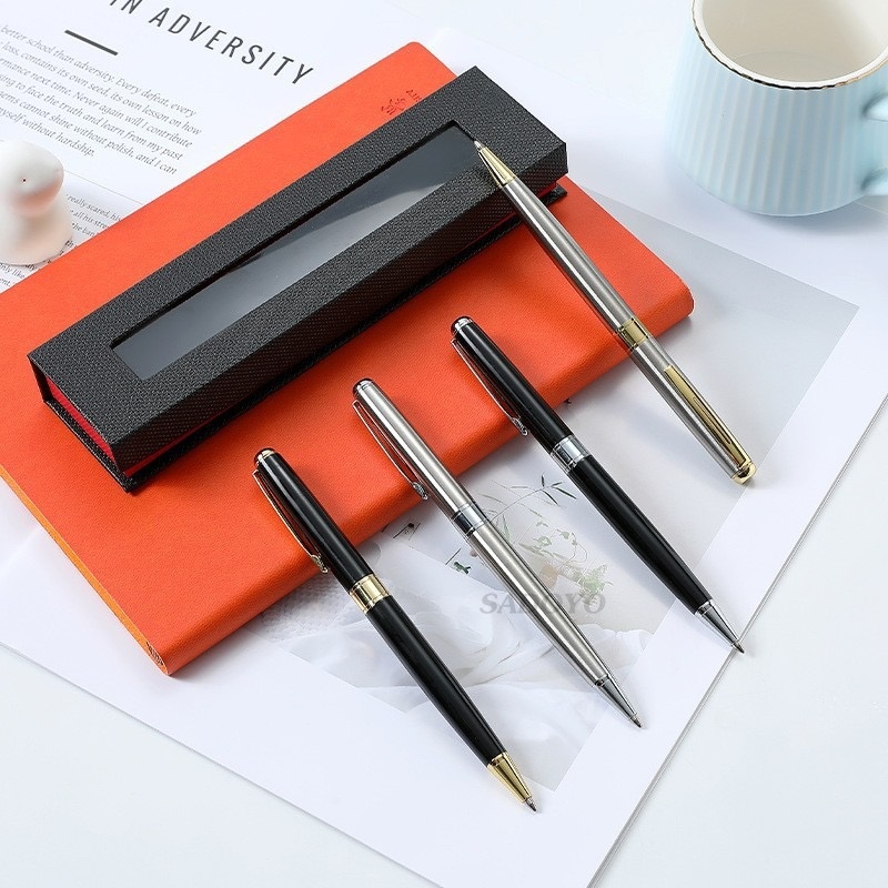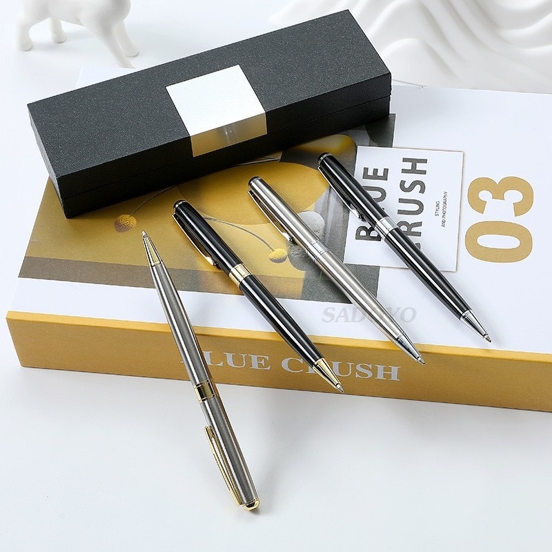 ปากกาลูกลื่น หมึกสีน้ำเงิน 0.7 มม. แบบหมุน ด้ามโลหะ หมึกเข้ม จับถนัดมือ สามารถเปลี่ยนไส้ได้#pen