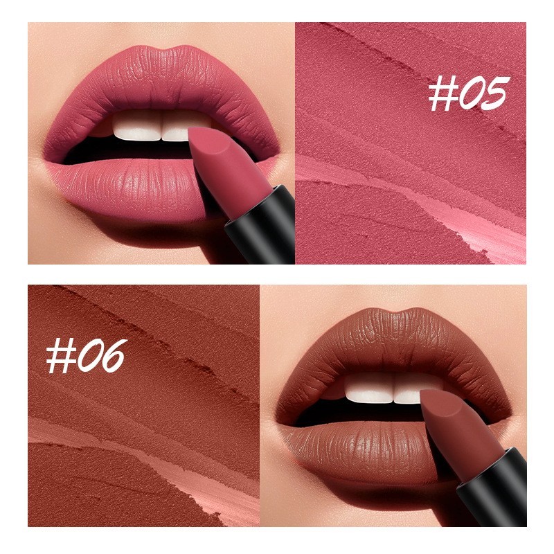ลิปสติกเนื้อกำมะหยี่ สีช็อกโกแลตแดงเข้ม | ไม่ติดแก้ว ติดทนนาน เนื้อนุ่มชุ่มชื้น เหมาะกับผิวสองสี