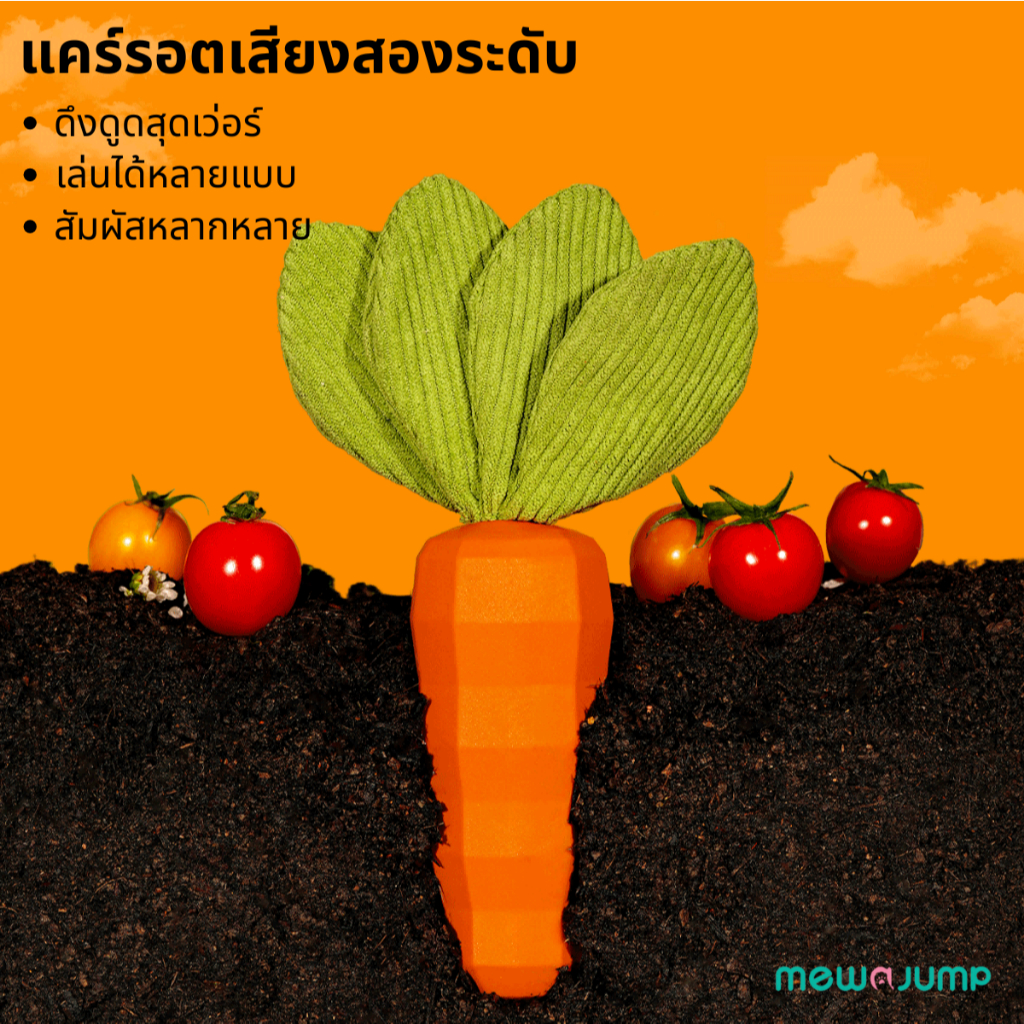 MewaJump ของเล่นเคี้ยวสุนัข รูปทรงแครอท ผลิตจากยางปลอดสารพิษ แข็งแรงทนทาน ช่วยทำความสะอาดฟัน มีเสียงบี๊บและเสียงกรอบแกรบ ทนต่อการกัด