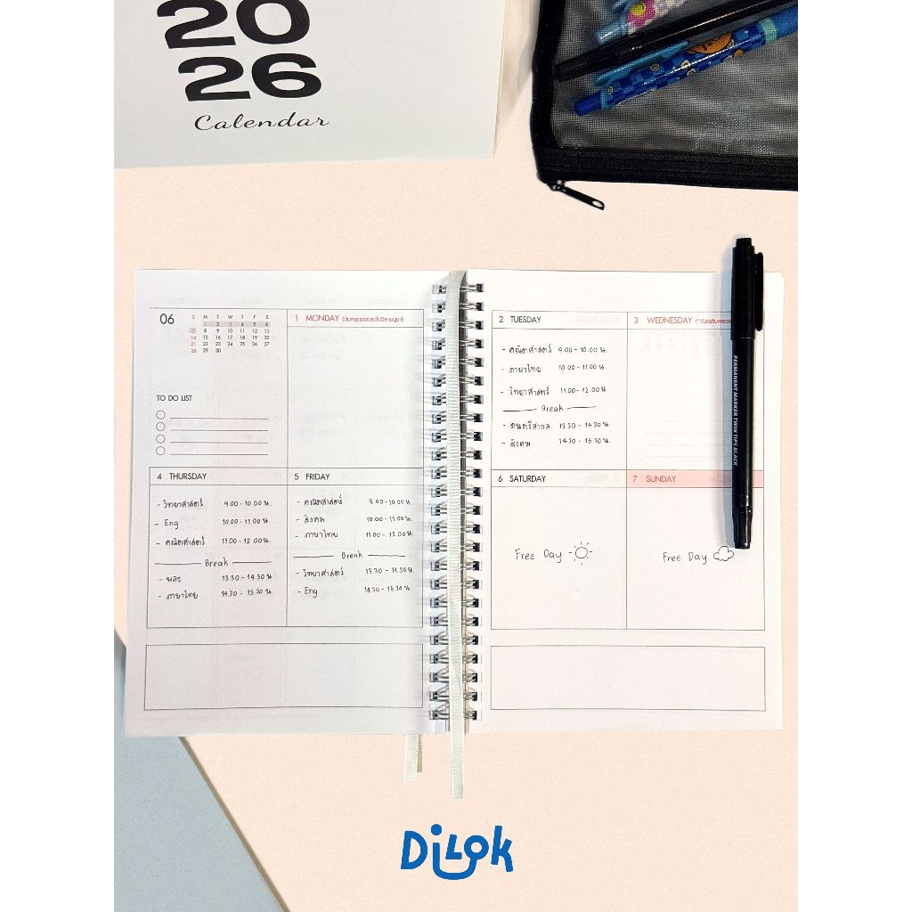 Dilok สมุดแพลนเนอร์ 2569 | Monthly Planner 2026 ขนาด A6 / A5 มีวันหยุดไทย ของขวัญปีใหม่
