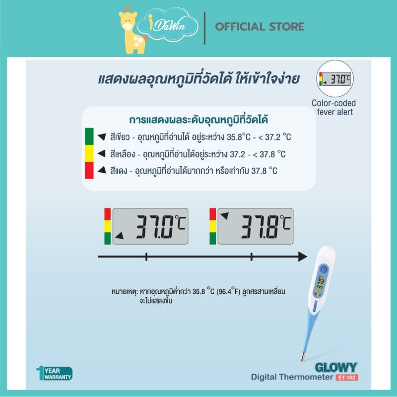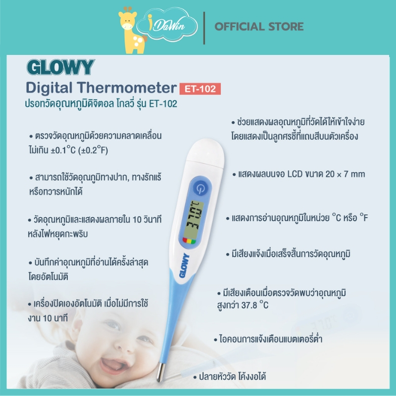 GLOWY Digital Thermometer (ET 102) ปรอทวัดไข้ดิจิตอล โกลวี่ รุ่น ET 102 แสดงผลภายใน 10 วินาที