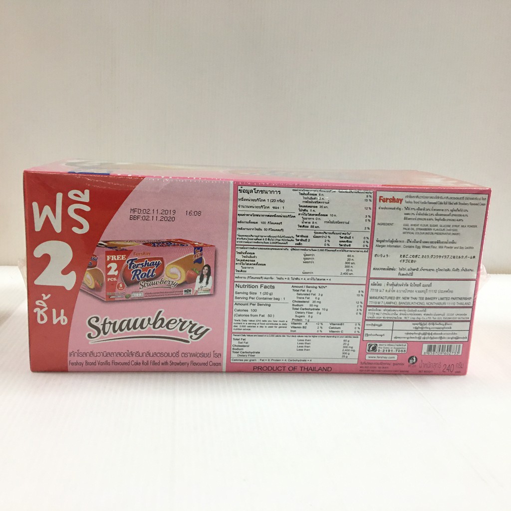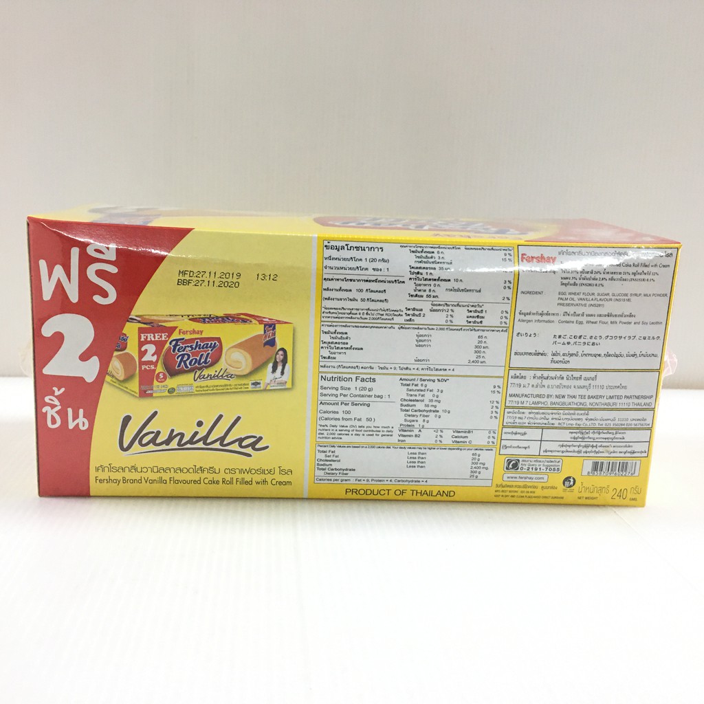 เค้กโรล ตรา เฟอร์เชย์ ( วานิลลา / ช็อกโกแลต / สตรอเบอร์รี่ / กล้วย) 20 กรัม x 12 ชิ้น (240กรัม)