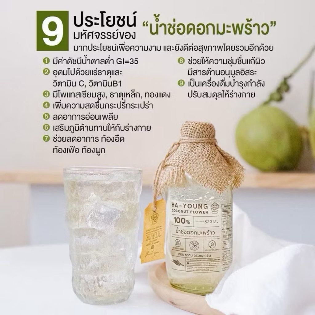 (แพ็ค6-10ขวด) น้ำช่อดอกมะพร้าว ตราฮายังHAYOUNG have a health 100% coconut flower