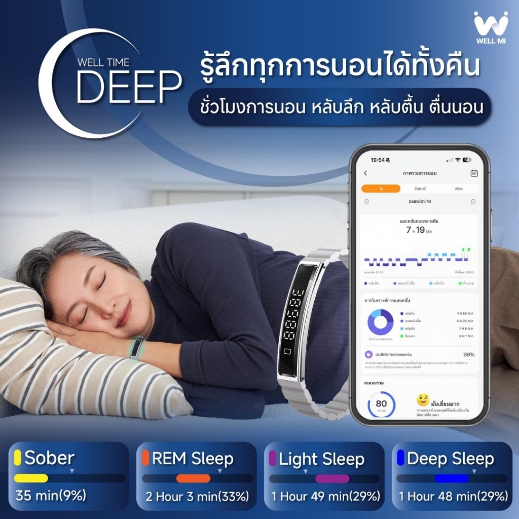 Well Time Deep กำไลสุขภาพ ติดตามการนอน อารมณ์ ความเครียด นับก้าว