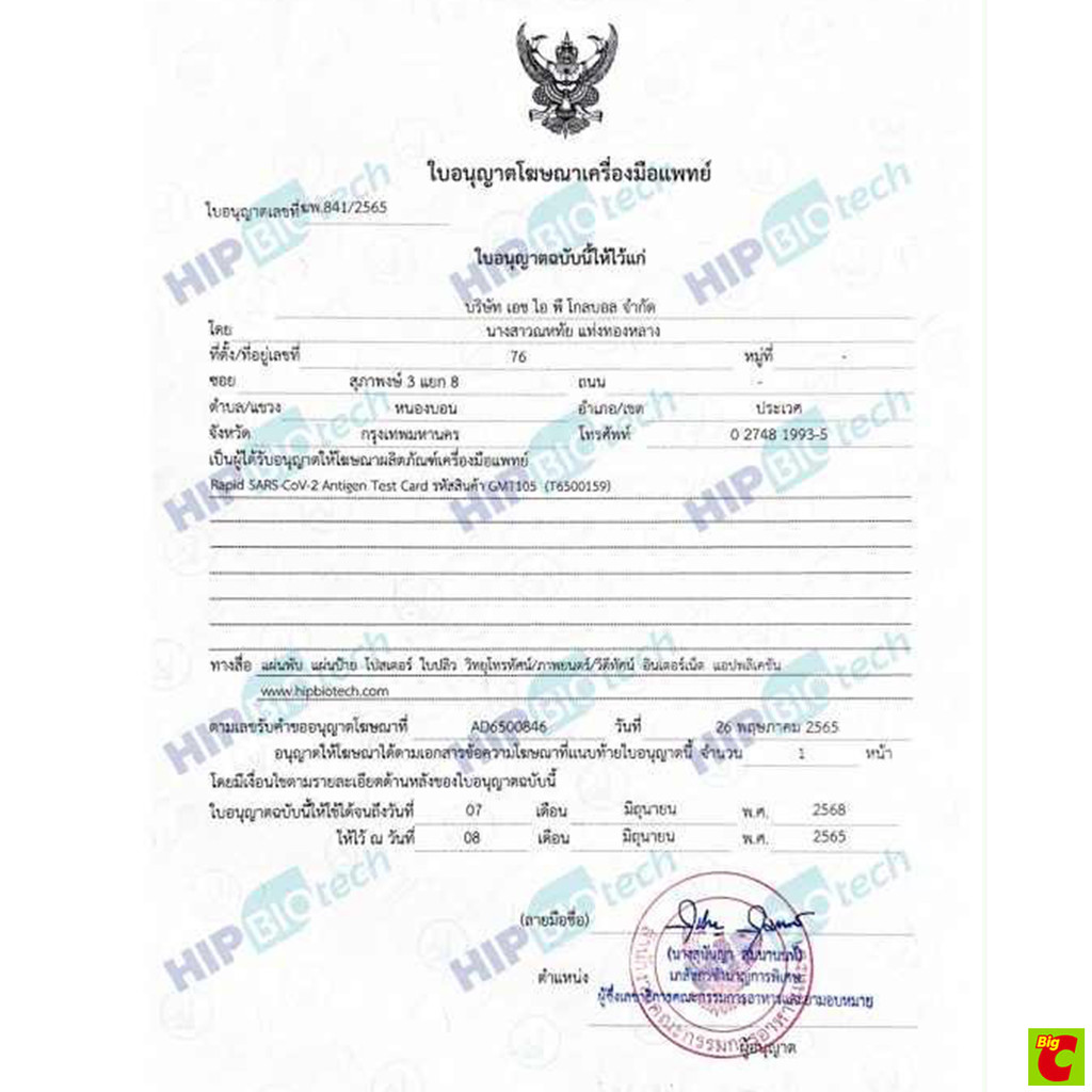 เอชไอพี ไบโอ เทค ชุดตรวจโควิด-19 แบบตรวจหาแอนติเจน