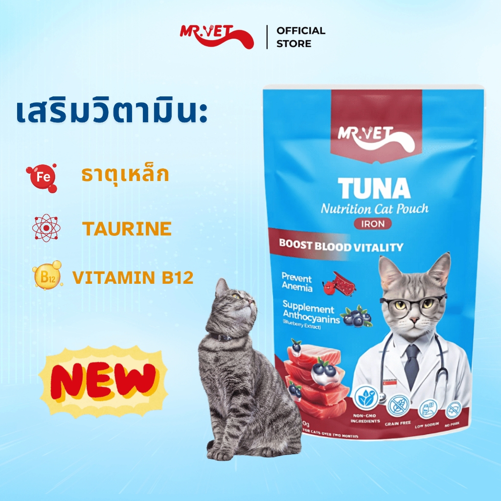 【48 แพ็ครวมกัน】Mrvet อาหารเปียกแมว อาหารแมวหลากหลายรสชาติ อร่อยกว่า เพื่อสุขภาพของแมว
