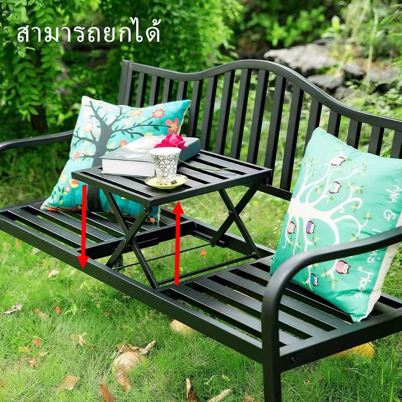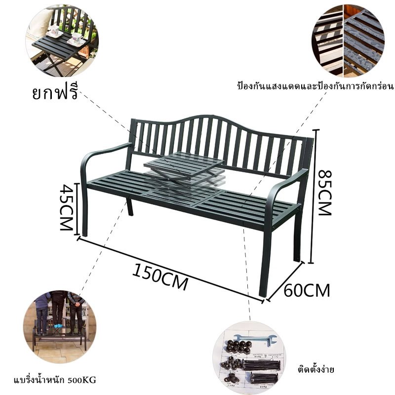 TREDEY 150 ซม. โต๊ะกาแฟแบบปรับได้โลหะม้านั่งกลางแจ้ง
