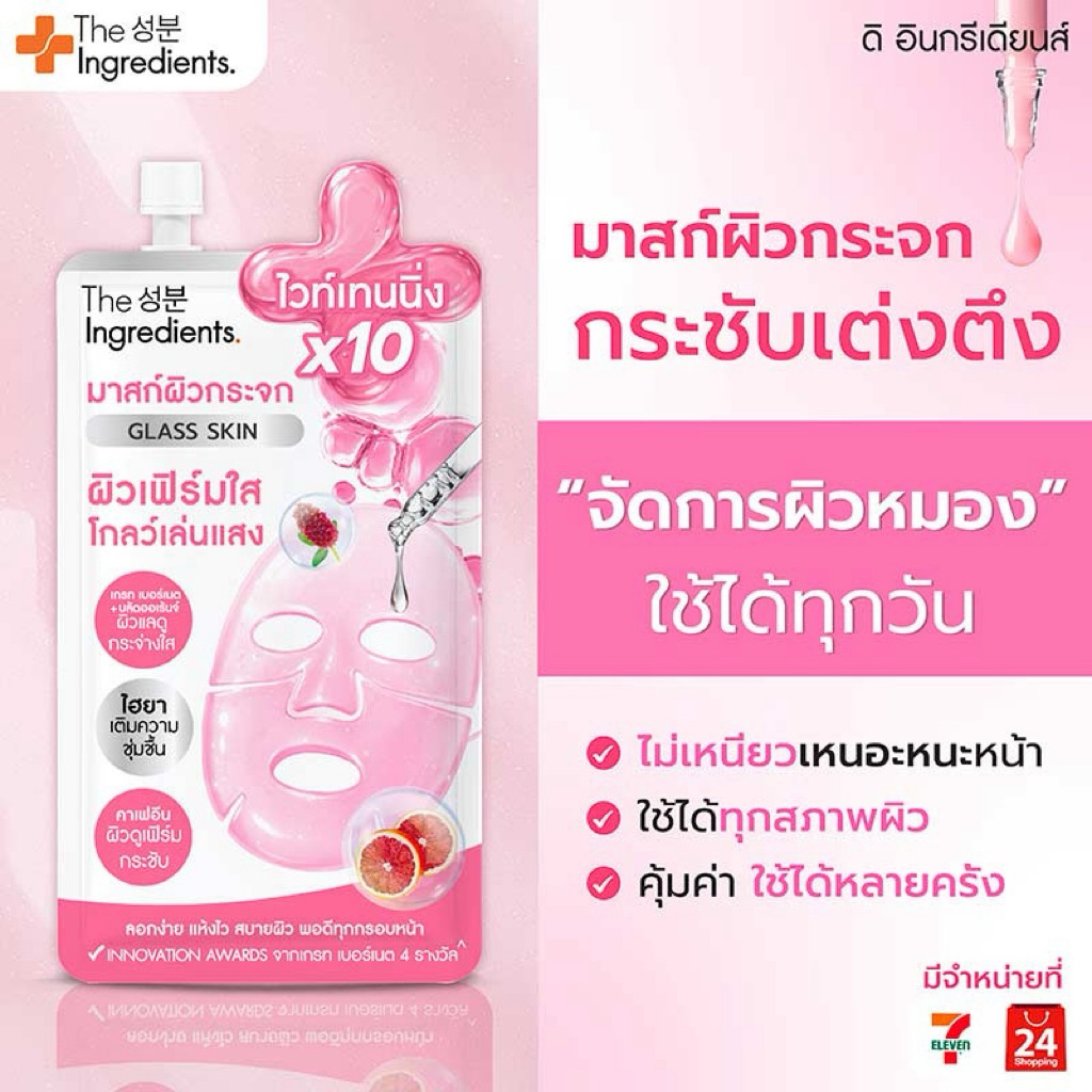 แท้(ซอง)มาสก์ผิวกระจก กลาสสกิลไวท์&ไฮโดรโกลว์ 10กรัมx6ซอง ดิ อินกรีเดียนส์ Ingredients