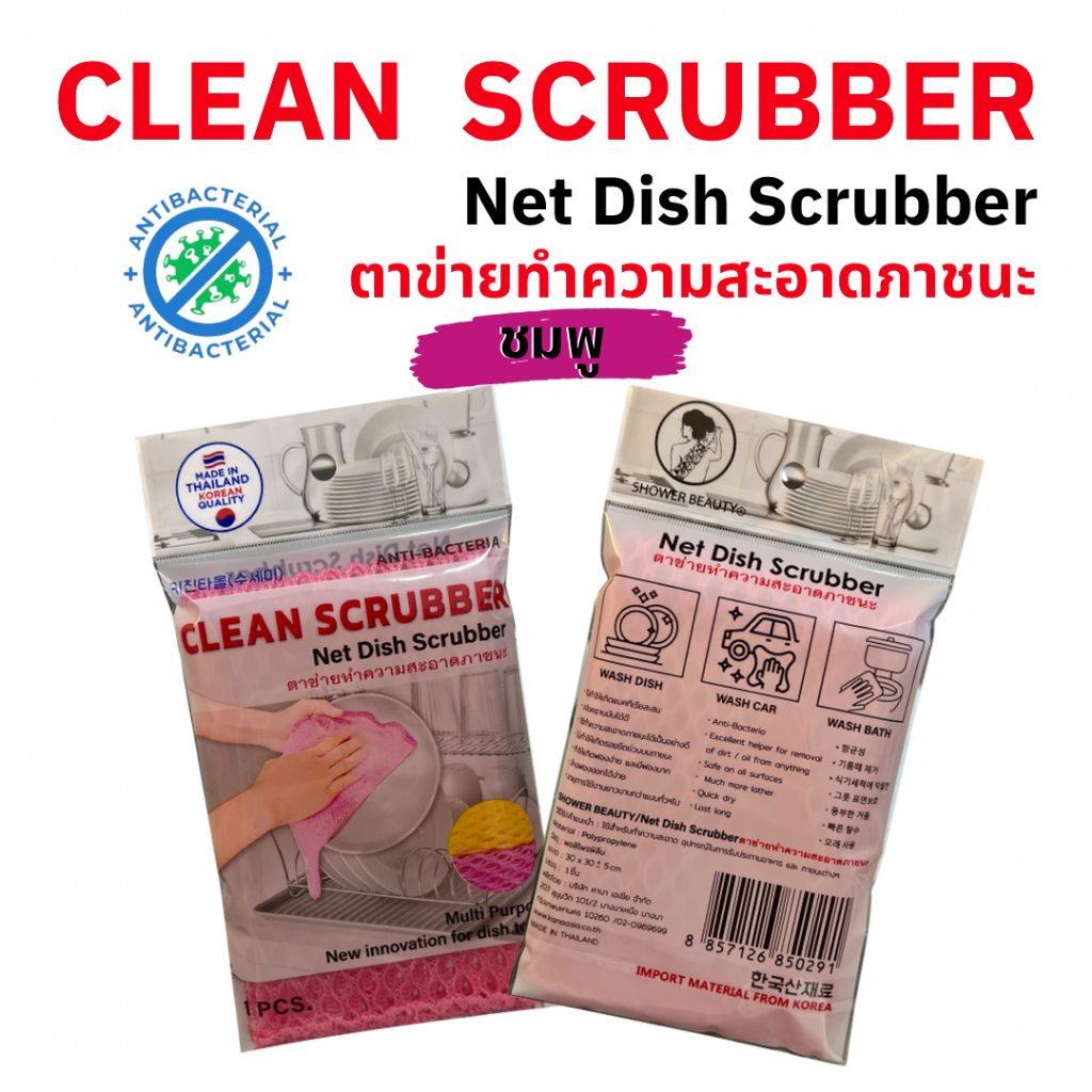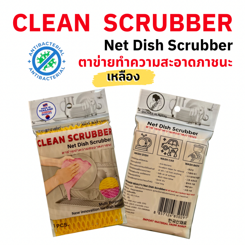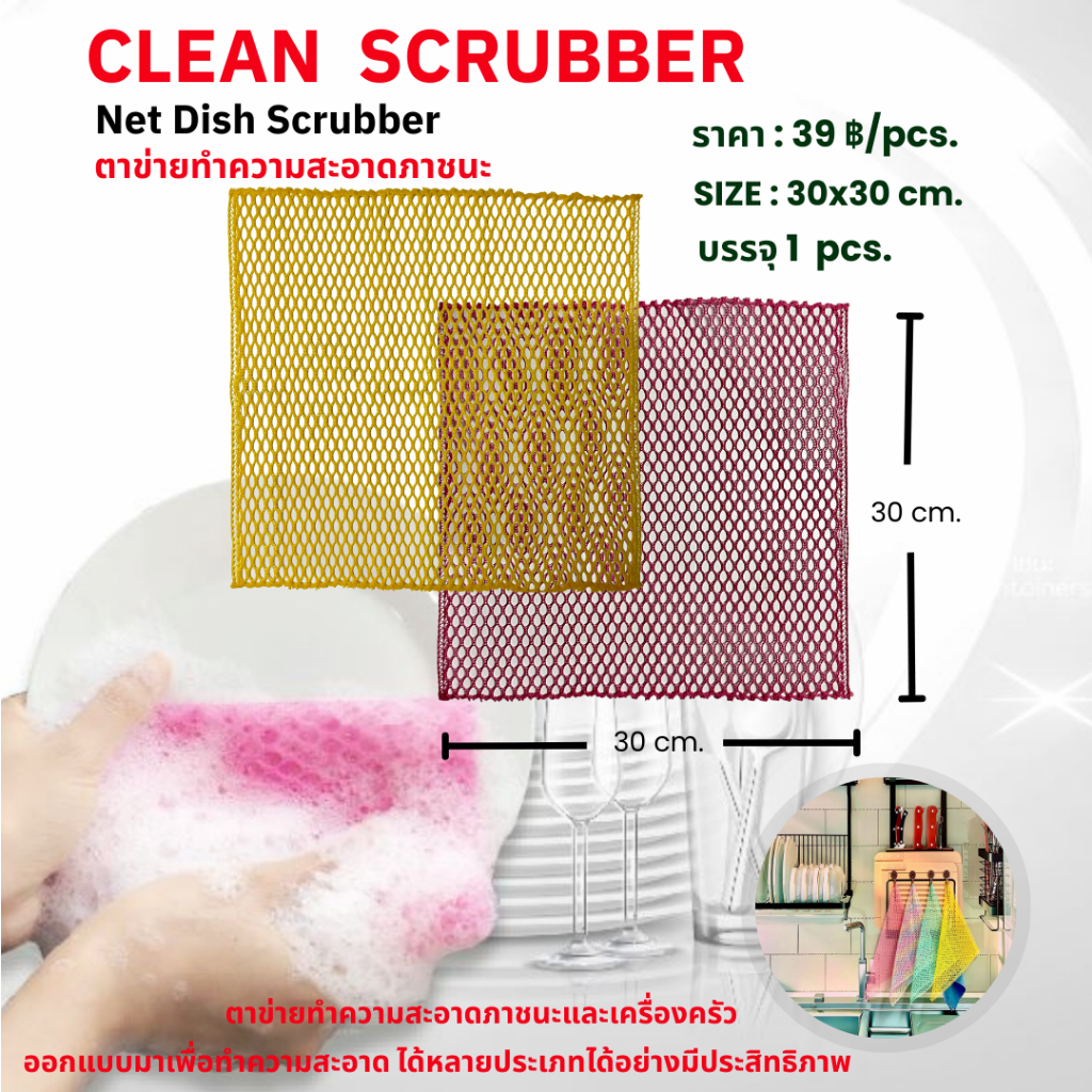 ตาข่ายล้างจานชามและเครื่องครัว วัตถุดิบเป็นผ้าแบบเน็ต Net Dish Scrubber( Yellow,Pink ) SET 1 pcs.