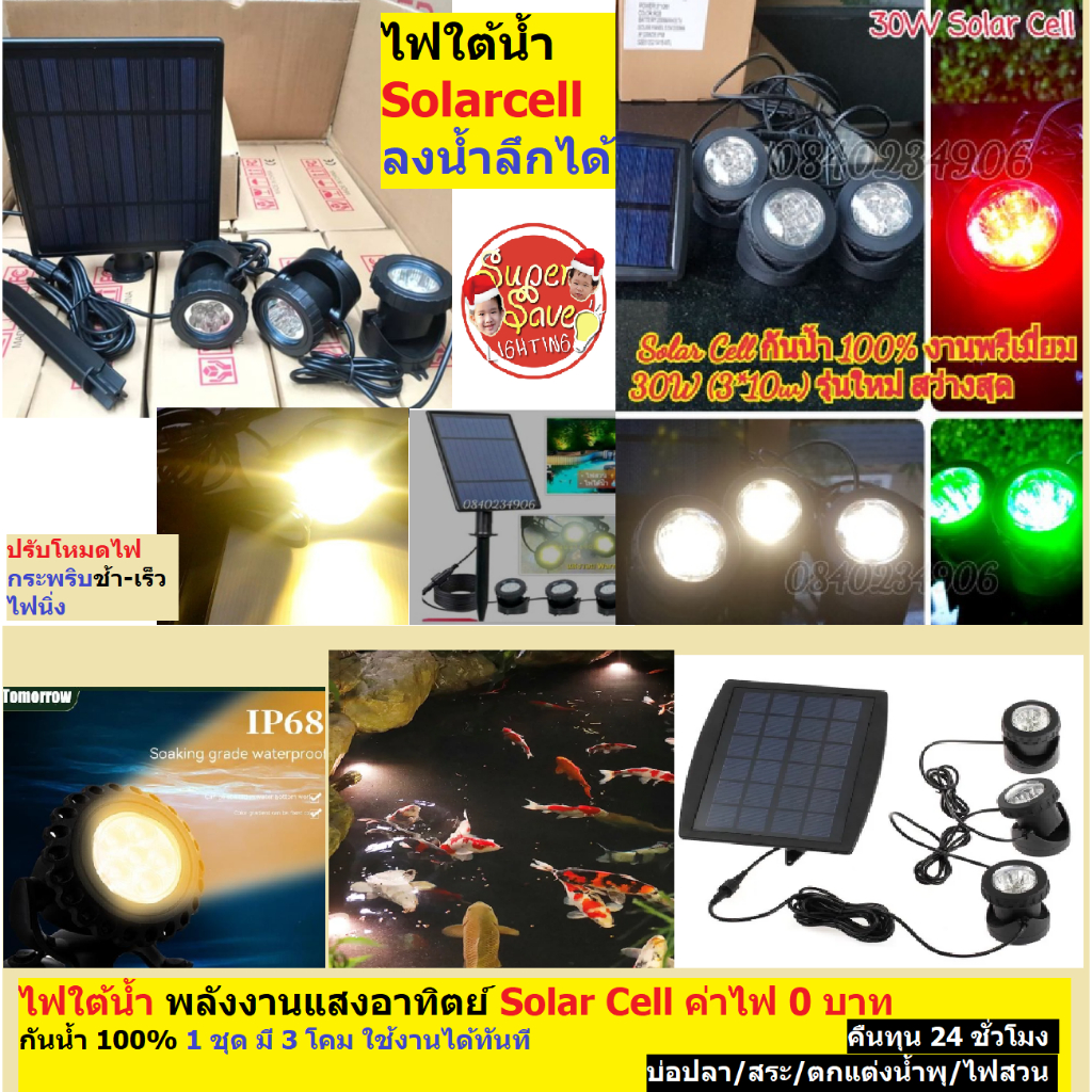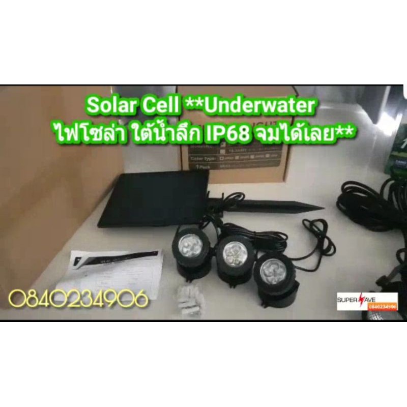 โซล่าเซลล์ไฟใต้น้ำ Solar cell โคมไฟ LED 3 ดวง 30 w cool white Warm white RGB สำหรับตกแต่งสวน ตกแต่งบ่อปลาตกแต่งน้ำตก
