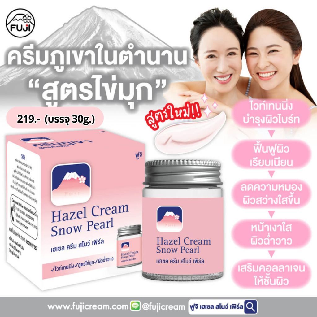 ครีมภูเขา ฟูจิ เฮเซล ครีม สโนว์ [ชมพู สูตรไข่มุก] 30 ก.FUJI HAZEL CREAM SNOW PEARL 30 G