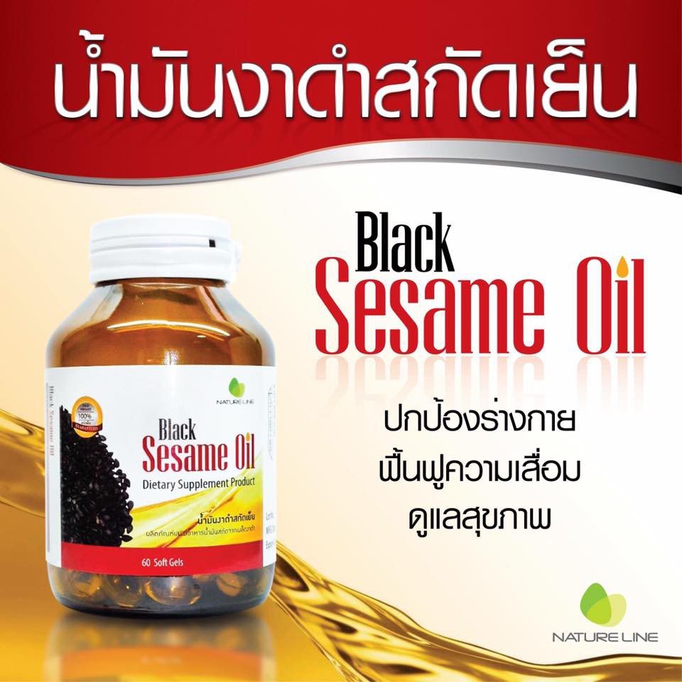 Nature Line Black Sesame Oil 500 mg. เนเจอร์ ไลน์ น้ำมันงาดำสกัดเย็น