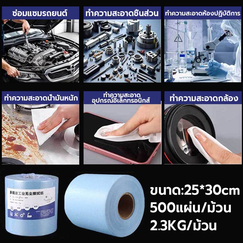 CENTURY. 500 แผ่น/ม้วน กระดาษเช็ดอุตสาหกรรม ผ้าเช็ดอุตสาหกรรม ไม่ทิ้งคราบขุย กระดาษเช็ดคราบ เช็ดคราบสกปรกไม่ทิ้งคราบขุย