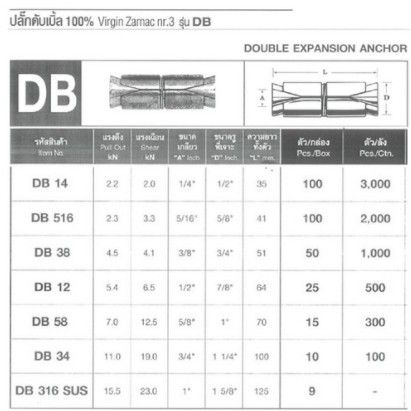 FASTENIC พุก ปุ๊กตะกั่ว 1/4", 5/16" , 3/8" , 1/2" ส่งไวภายใน 1 วัน (ราคา/ตัว)
