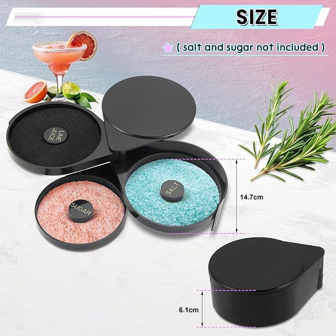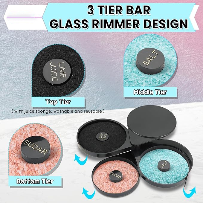 เครื่องมือบาร์เทนเดอร์กระจกริมเมอร์บาร์3ชั้นพร้อมฟองน้ํา | Margarita ชุดบีบเกลือ, เครื่องหรี่เกลือสําหรับค็อกเทล, อุปกรณ์บาร์พลาสติกสีดํา 3 จุด อุปกรณ์บาร์เทนเดอร์