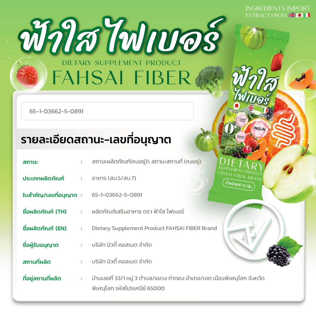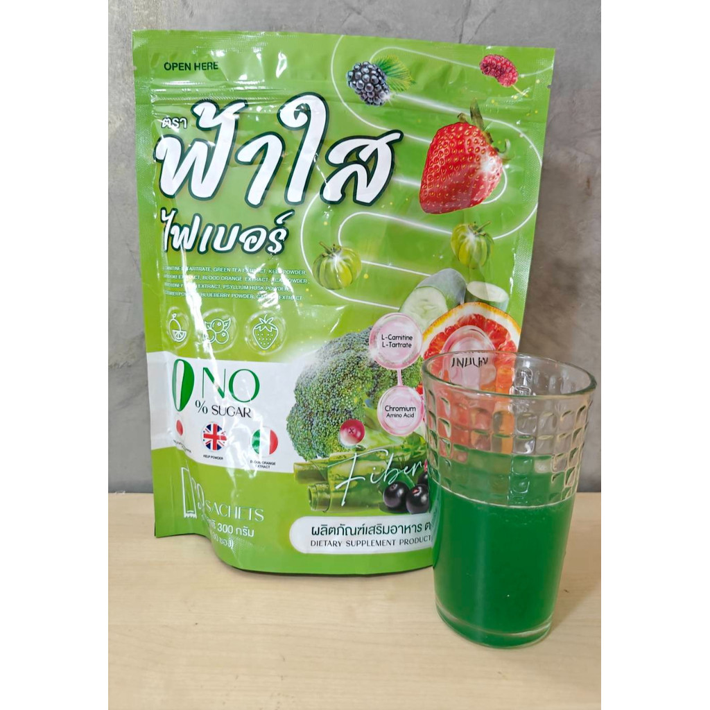 ไฟเบอร์ฟ้าใส ไฟเบอร์ผัก โพรไบโอติกส์ 1 กระสอบ 30 ซอง(ฟ้าใสถุงเขียว)