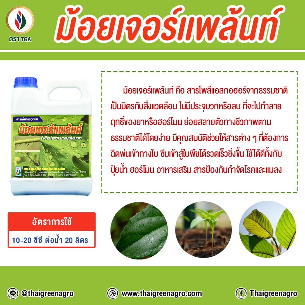 ม้อยเจอร์แพล้นท์ (สารจับเคลือบใบ) คือสารโพลีแอลกอฮอร์จากธรรมชาติ เป็นมิตรกับสิ่งแวดล้อม ย่อยสลายตัว