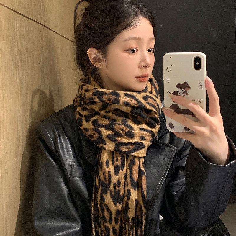 ผ้าพันคอแฟชั่น 200*70CM พิมพ์เสือดาว กันแดดผ้าคลุมไหล่ เนื้อผ้านุ่มพิเศษหนา แคชเมียร์เทียม ผ้าคลุมกันลมสำหรับผู้หญิง F102