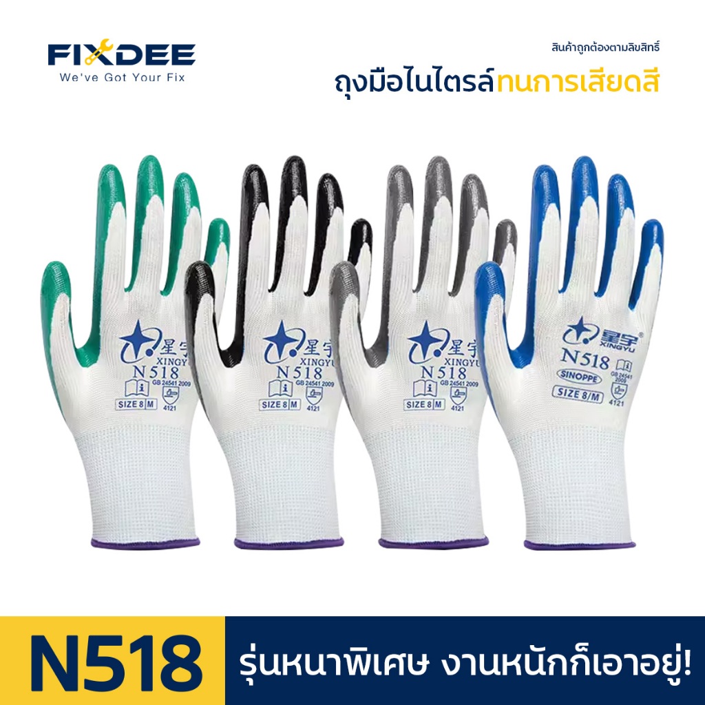 Fixdee ถุงมือเคลือบยางไนไตรล์ หนาพิเศษ เกรด 518 งานหนัก จับแน่น สำหรับงานหนัก ถุงมืออุตสาหกรรม
