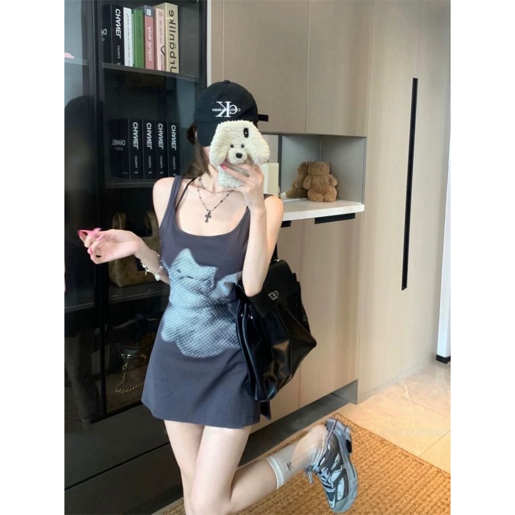 (พร้อมส่ง) เดรสกล้ามสกรีนลายช่วงอกรุ่น 8828 TAG WG.WE 🇰🇷