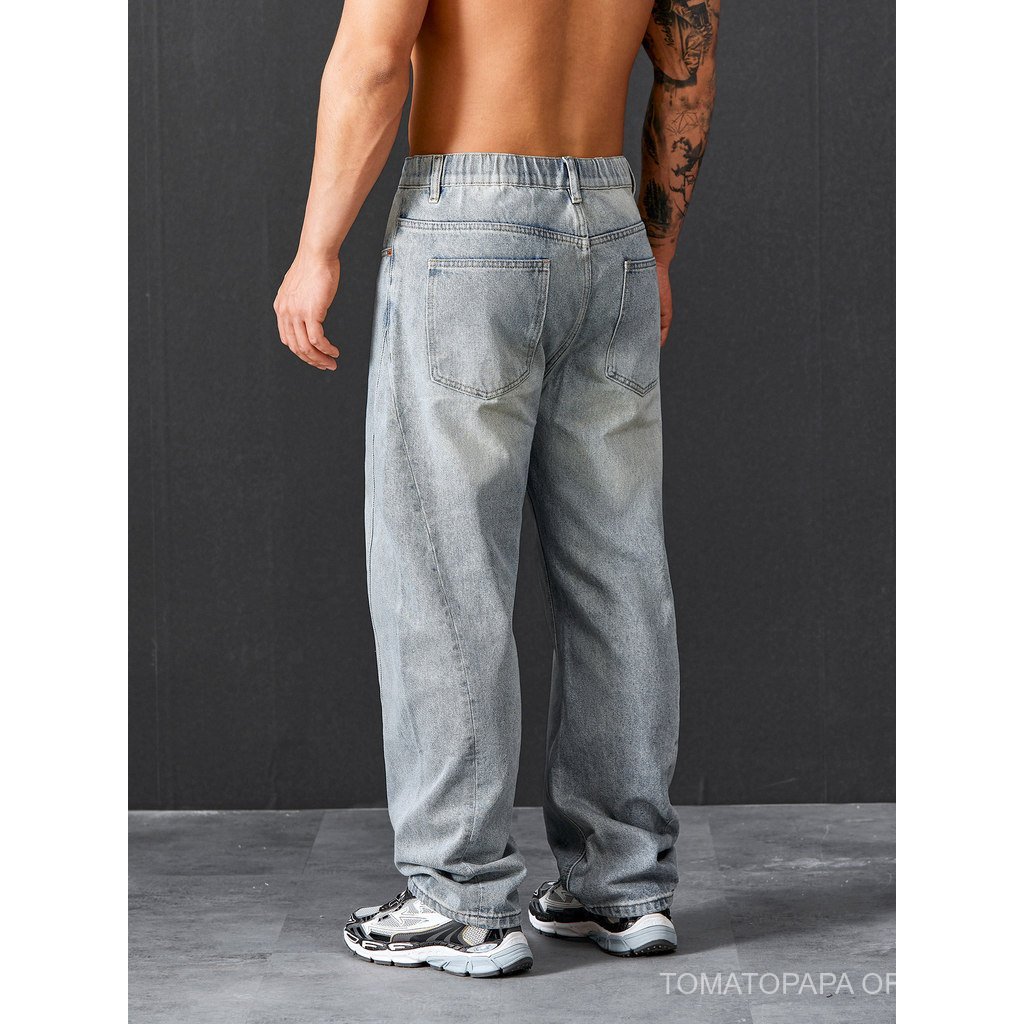TOMATOPAPAA American Retro Washed Distressed Jeans Mens Loose Straight Casual Four Seasons Universal Pants