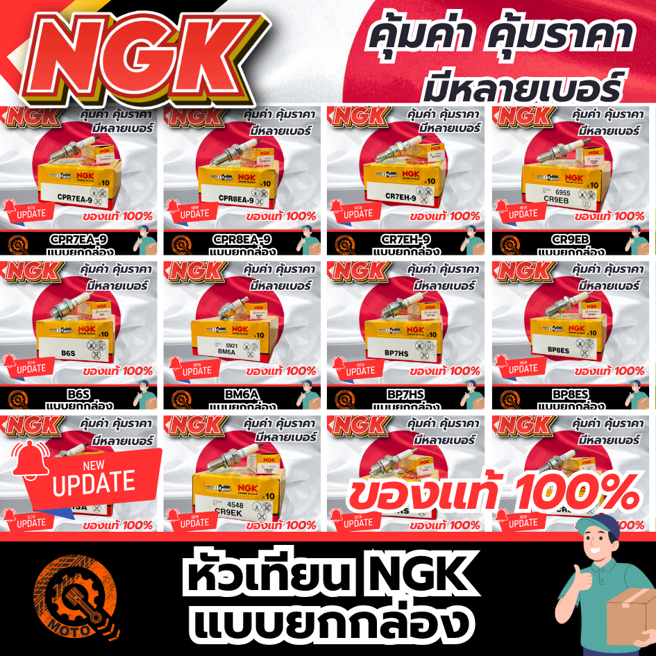 (ยกกล่อง) หัวเทียน NGK ของแท้ 100% มีหลายเบอร์ รถมอไซค์ ใช้ได้หลายรุ่น ทน แรง คุณภาพสูง