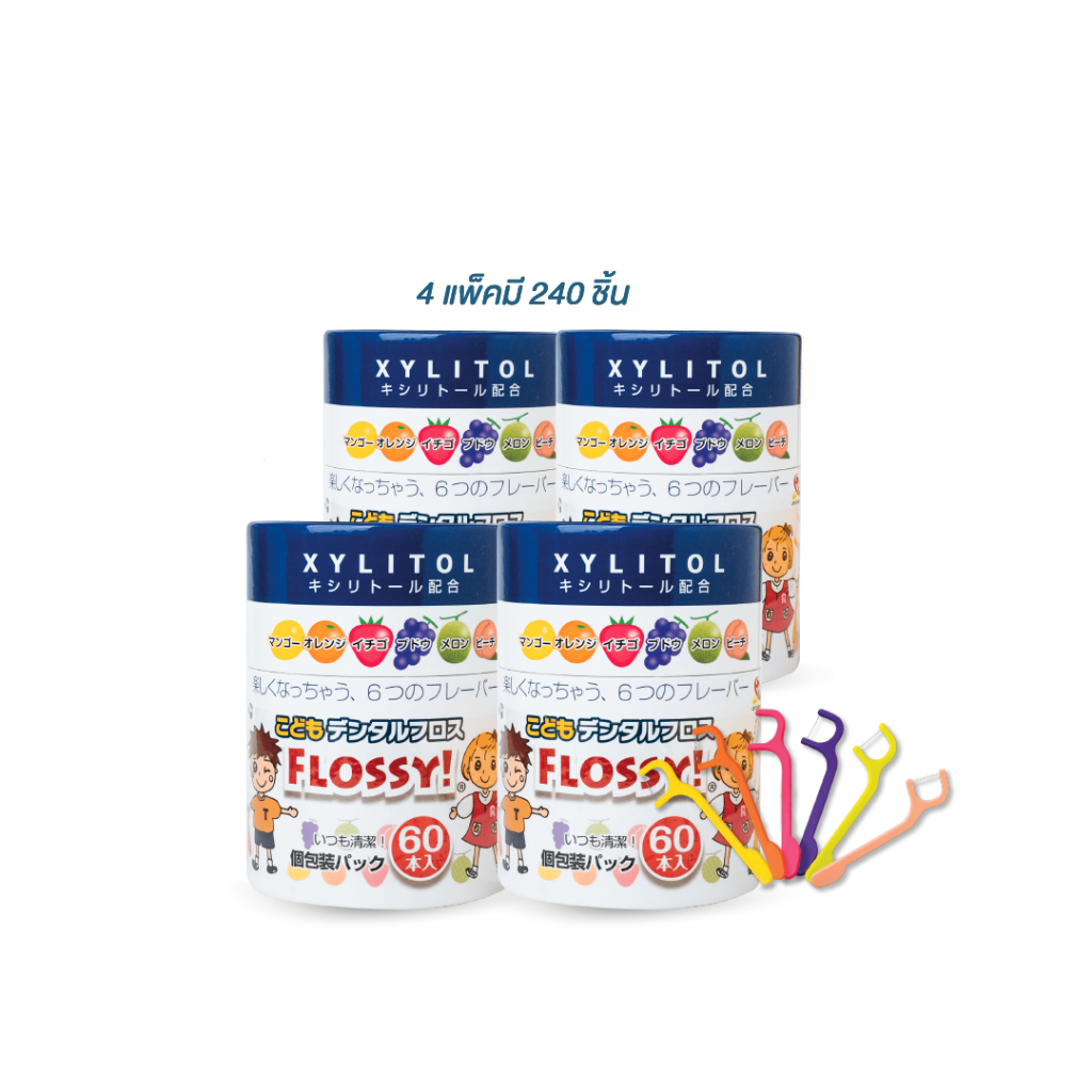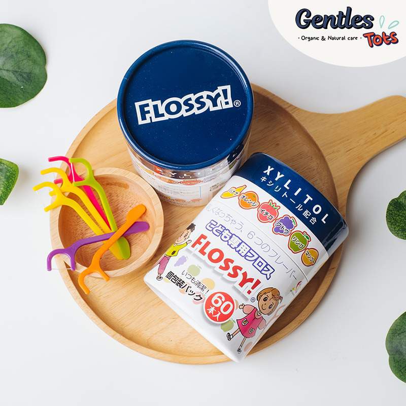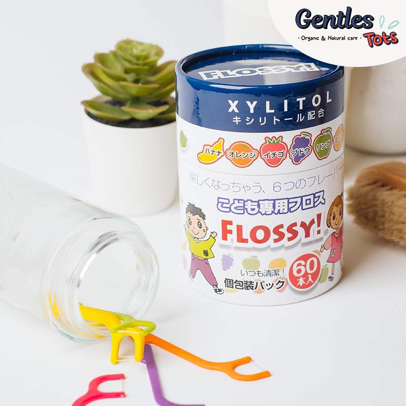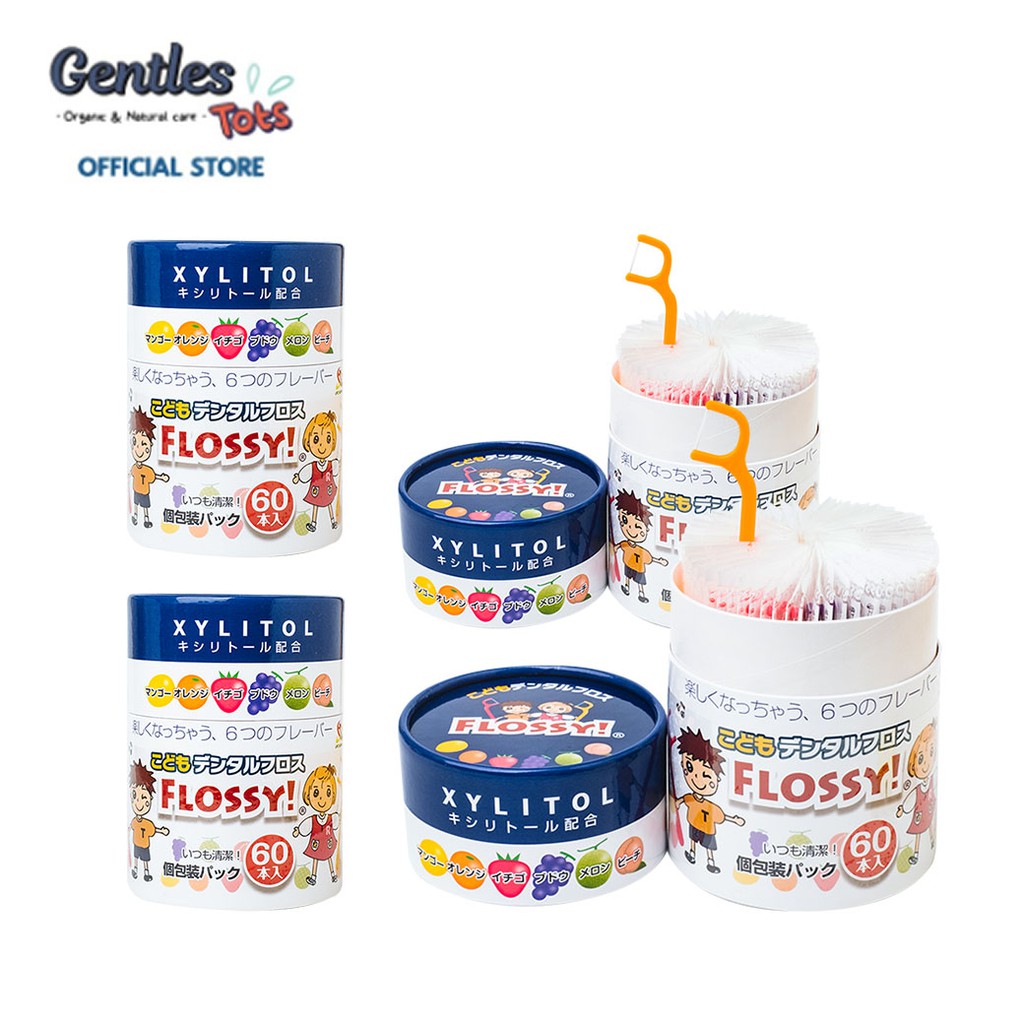 [แพ็คคุ้มx4] ไหมขัดฟันเด็กGentles Tots - Flossy for kids กล่อง 60 ชิ้น มี Xylitol และ กลิ่นผลไม้ (ของแท้จากญี่ปุ่น