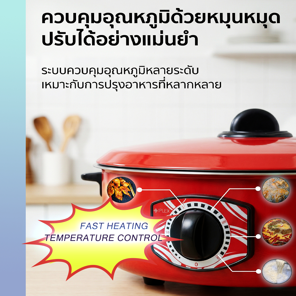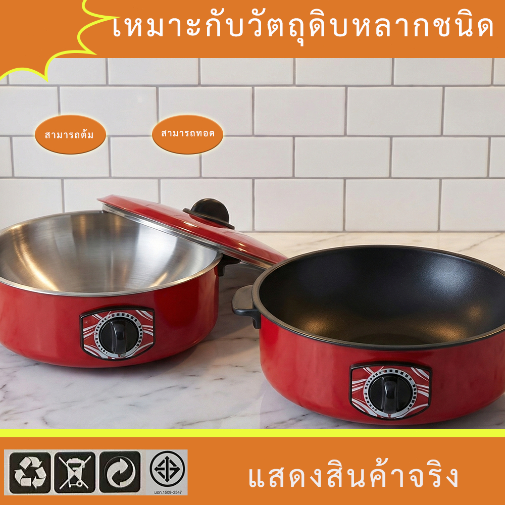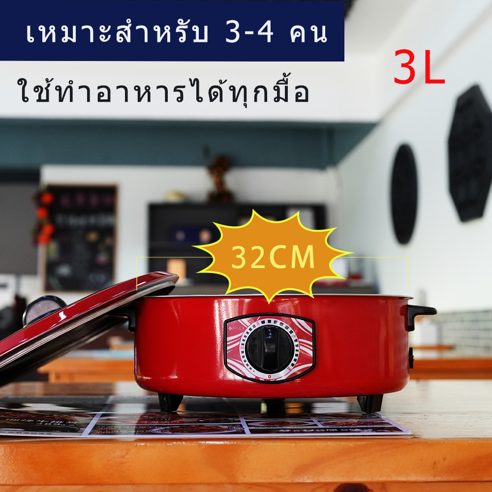 หม้อไฟฟ้า 32CM หม้อไฟฟ้าอเนกประสงค์ 1000W หม้อชาบู หม้อสุกี้ ทอด ต้ม ปรับอุณหภูมิได้ Electric Hot Pot Multi Cooker