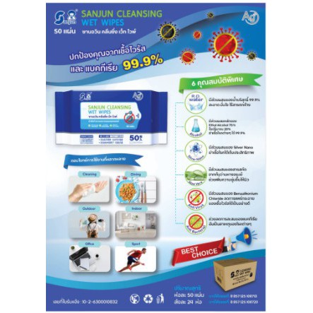 ทิชชู่เปียก ผสมแอลกอฮอลล์ 50 แผ่น แจ๊กซ์ ยับยั้งเชื้อแบคทีเรีย