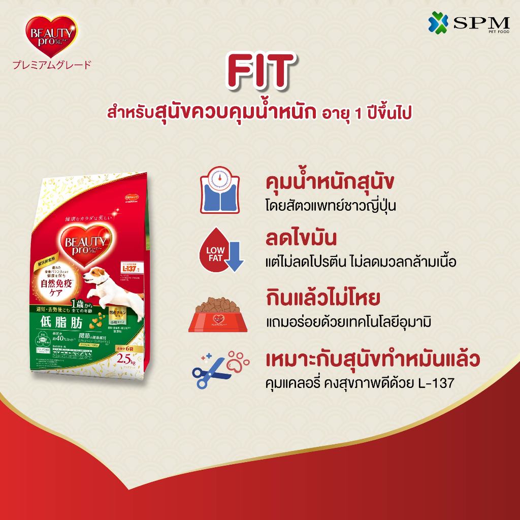 BeautyPro อาหารเม็ดสุนัขพรีเมียม สูตร Fit ควบคุมน้ำหนัก อายุ 1 ปี+ ขนาด 5.2 Kg. ไขมันลดลง 40%