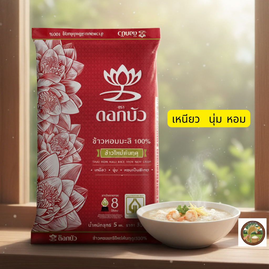 (5 Kgs.= 5ถุง) ข้าวหอมมะลิ100%ใหม่ต้นฤดู (ปี2026) ตราดอกบัว