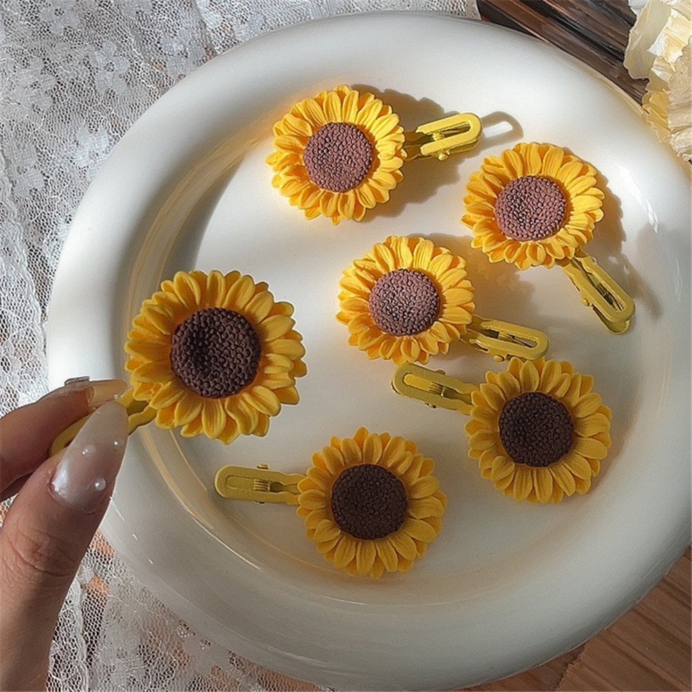 ดอกไม้ดอกทานตะวันหวานกิ๊บติดผมคําเดียวผู้หญิงหน้าผากหน้าม้าคลิปด้านข้างคลิปปากเป็ดระดับไฮเอนด์