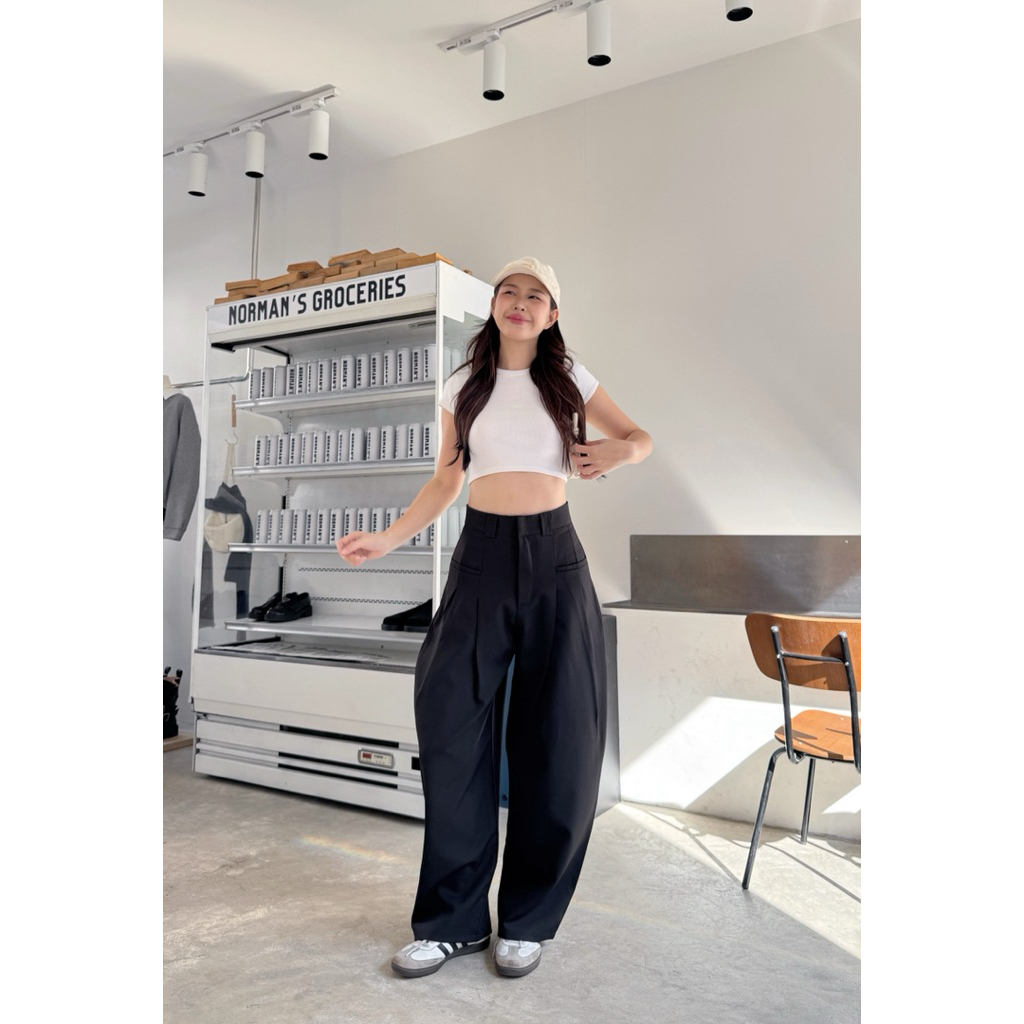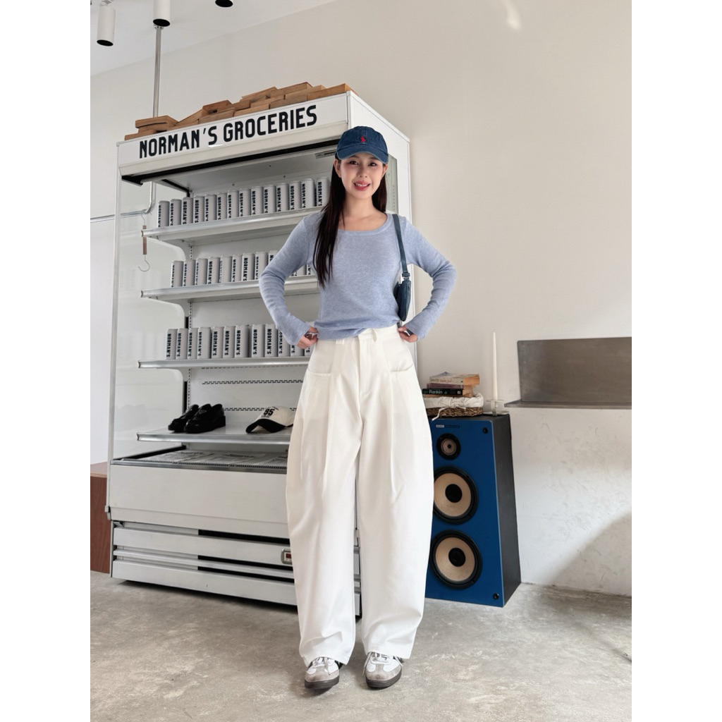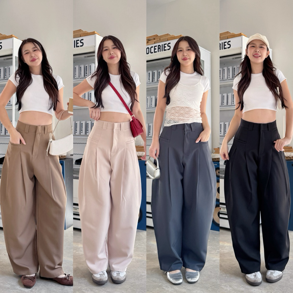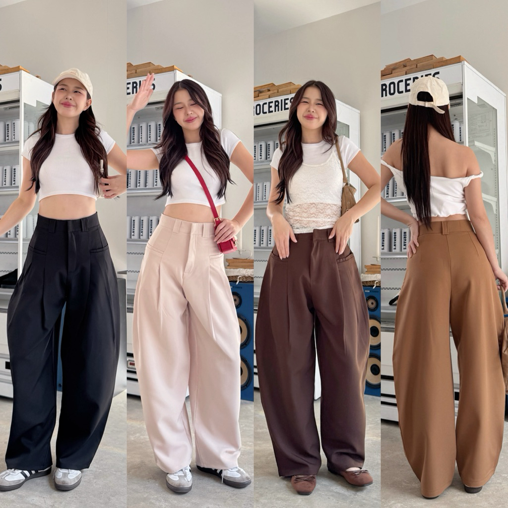กางเกงขากระบอกทรงBarrel pants พรางหุ่นพรางสะโพก ผ้าหนา detail งานกระเป๋าเฉียงเจาะ2ข้าง (ไม่มีกระเป๋าหลัง)**🧶✨🍰