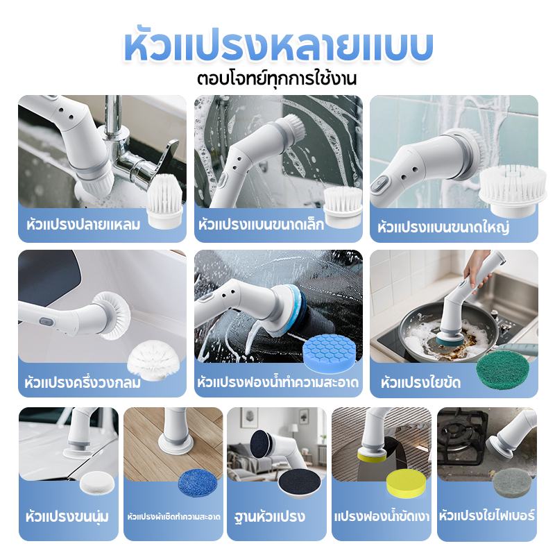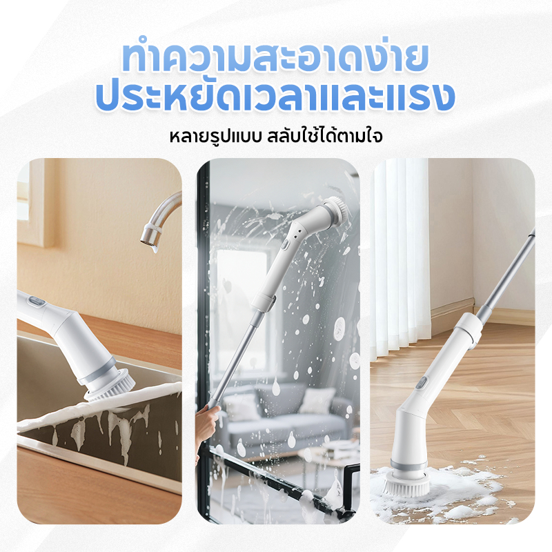 MODOFO 9in1 แปรงขัดไฟฟ้า แปรงขัดพื้น แปรงทำความสะอาด แบต4000mAh ฟรี9หัวแปรง ทำความสะอาดง่าย