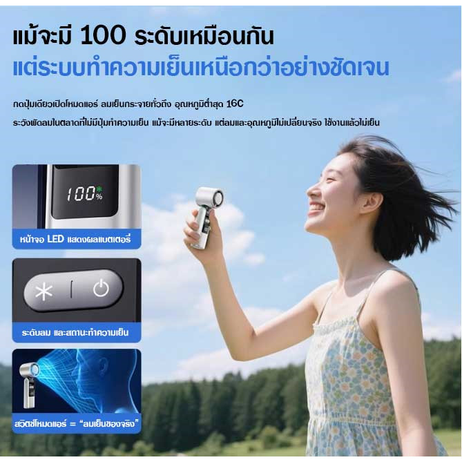 พัดลมไอเย็นพกพา Handheld fan รุ่น k-801 มีไฟฉายในตัว ปรับระดับความเเรงได้100 คล้องคอตั้งโต๊ะ มี 3 สี