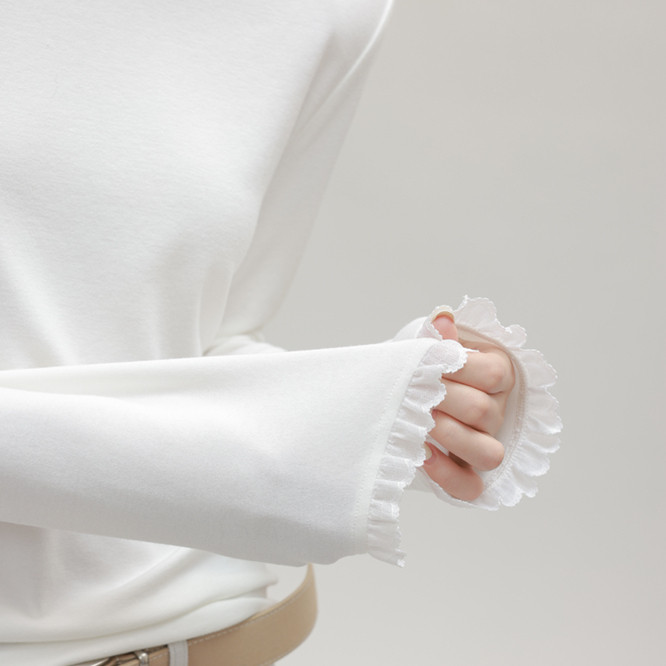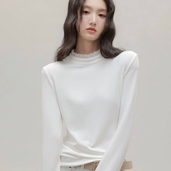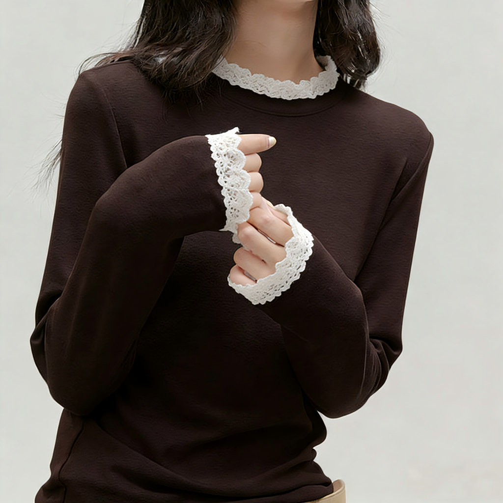 Jeanswest กั๊กยีนส์ ตัวในแขนยาวขอบลูกไม้ คอนี้สูง สไตล์ครึ่งตัว สำหรับผู้หญิง