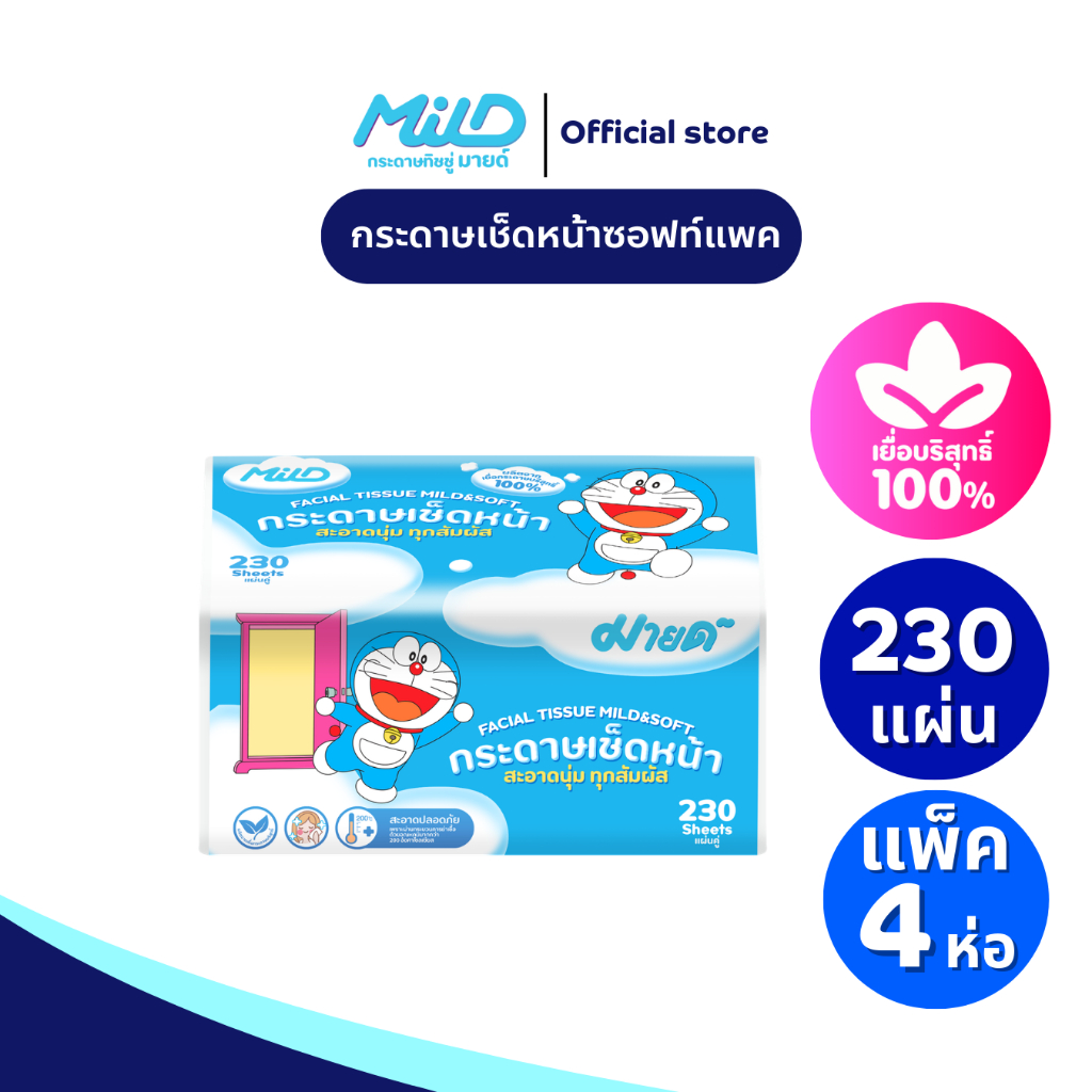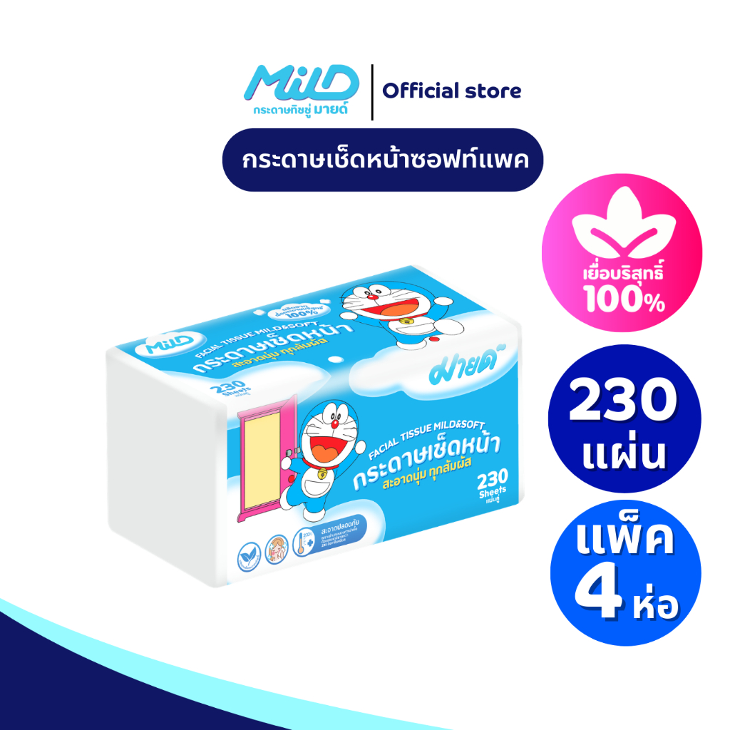 ( แพ็ค 4 ห่อ ) มายด์ กระดาษเช็ดหน้าซอฟแพ็ค โดราเอม่อน 230 แผ่น (1x4x10)