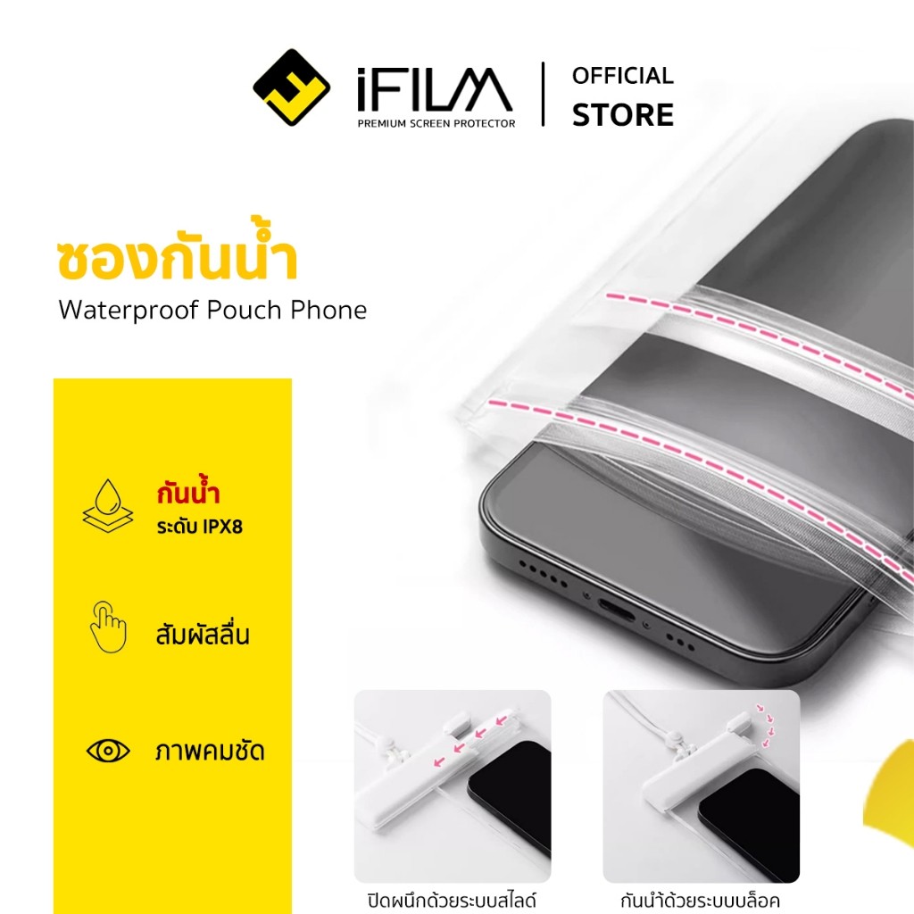 [Official] iFilm ซองกันน้ำโทรศัพ มือถือ IPX8 กันน้ำได้ดี คุณภาพสูง สัมผัสง่าย กระเป๋ากันน้ำ ถุงกันน้ำ Waterproof Pouch