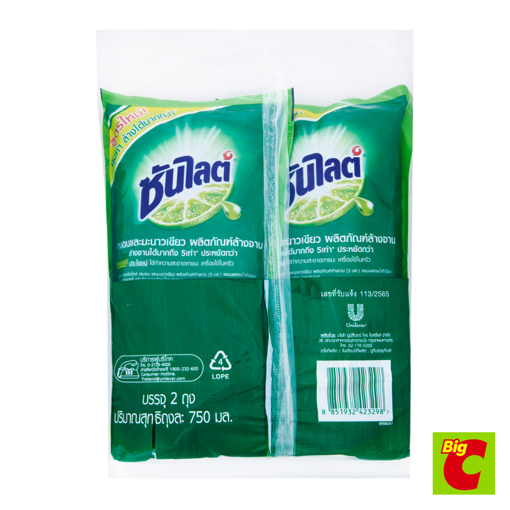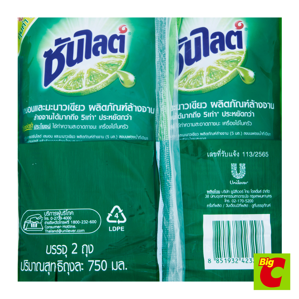 ซันไลต์ เอ็กซ์ตร้า เลมอนและมะนาวเขียว น้ำยาล้างจาน 750 มล. แพ็ค 2