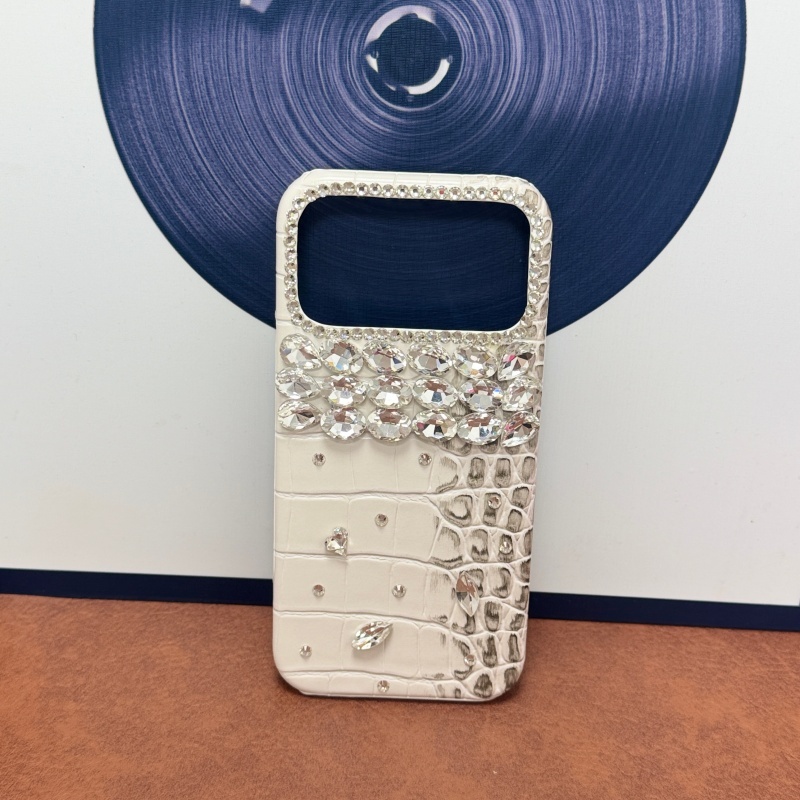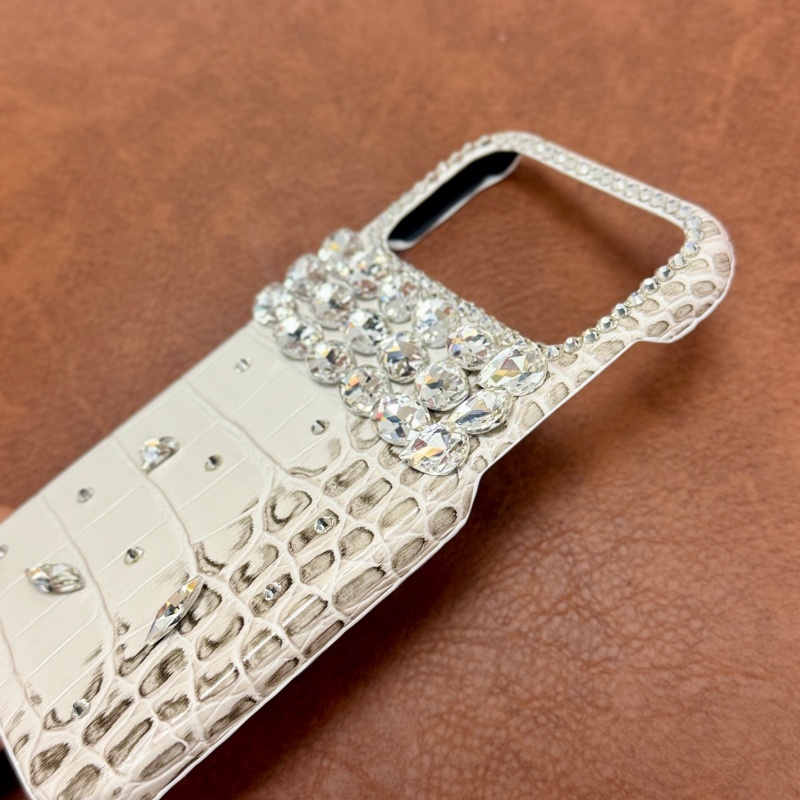Handmade Silver Diamonds หนังจระเข้เคสโทรศัพท์สําหรับ iPhone17 Air 16Promax 14Plus 15Pro 13 12 11 ครึ่งครอบคลุม