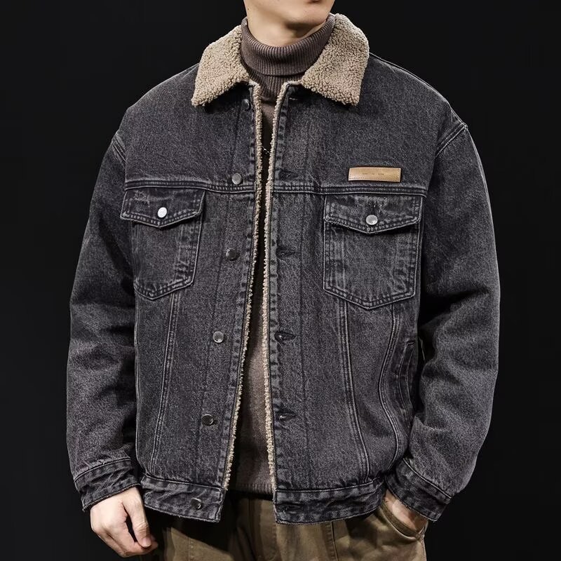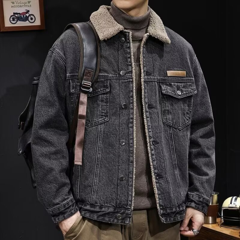 เต่าเบอร์สตาร์ แจ็คเก็ตยีนส์บุขนย้อนยุคอเมริกันสําหรับผู้ชาย 2025 ฤดูใบไม้ร่วงฤดูหนาวเสื้อหลวมอินเทรนด์