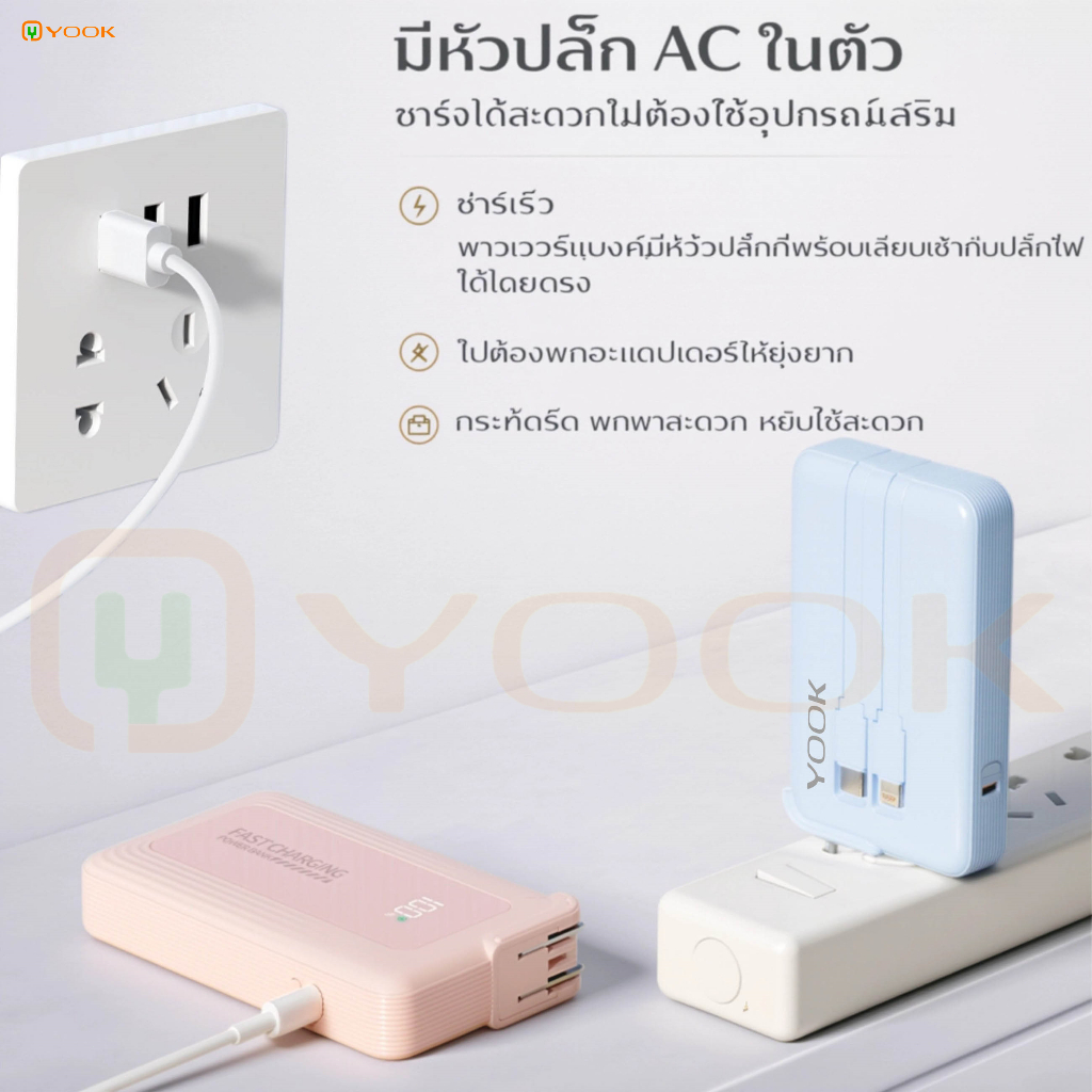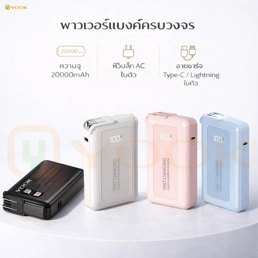 YOOK Powerbank 20000mAh แบตสํารอง Fast Charge PD20W With Built-in AC Plug For iP/Andro