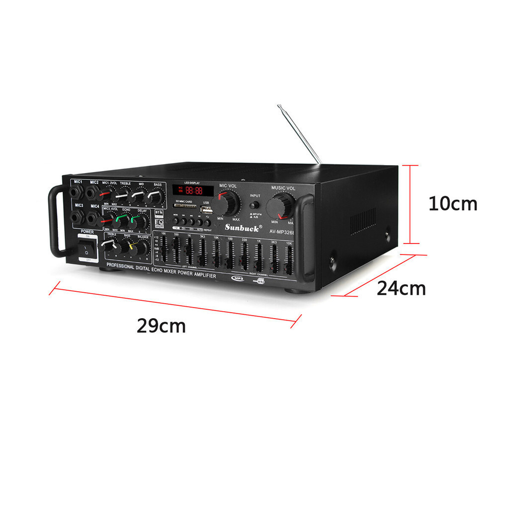 เพาเวอร์แอมป์ 2000W AV-326BT แอมป์ขยายเสียง ใช้ลำโพง 15นิ้วได้ เครื่องขยายเสียง แอมพลิฟายเออร์ มีบลูทูธ MP3 USB SD