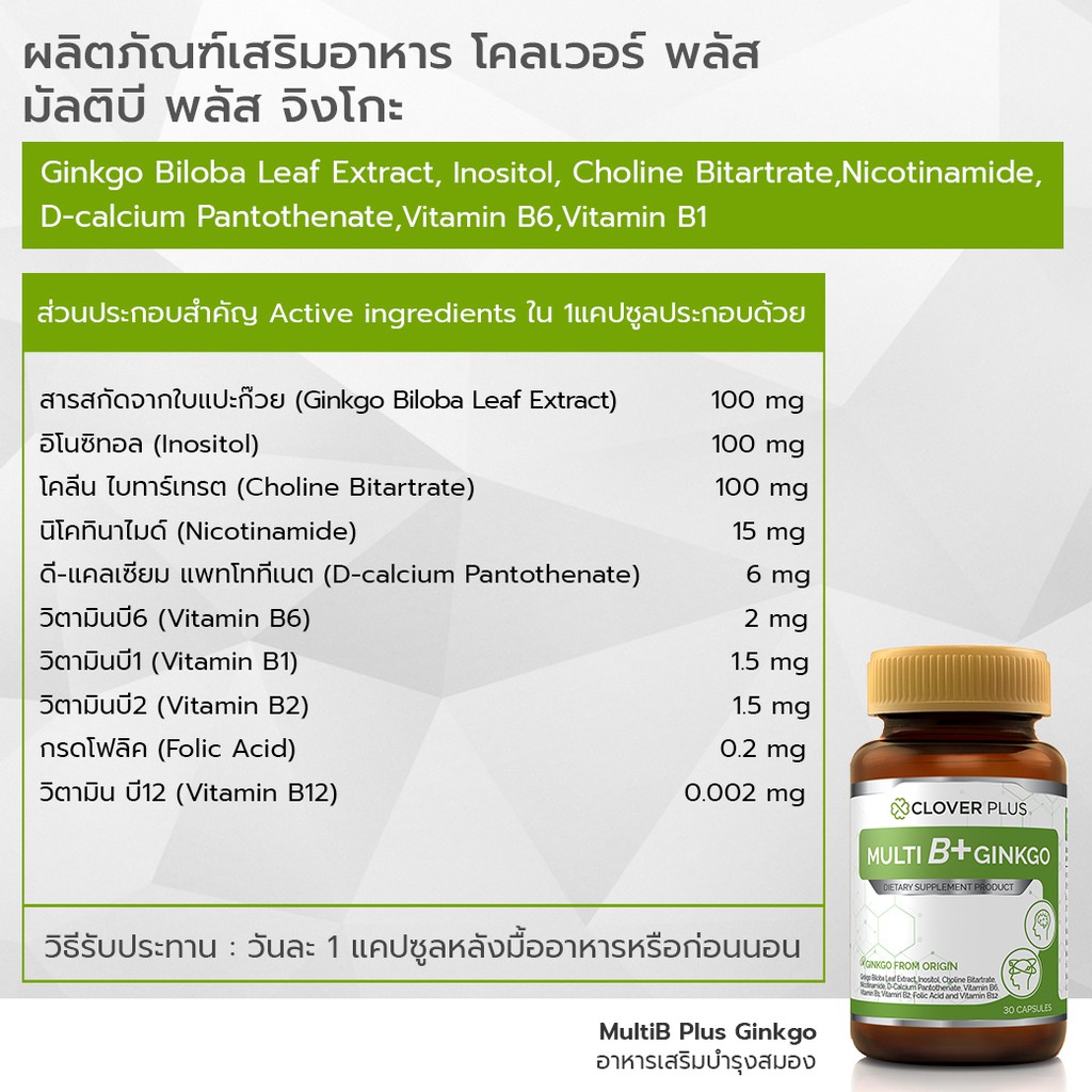 Clover Plus Multi B Plus Ginkgo (30 แคปซูล) สารสกัดจาก วิตามินบีรวม และ ใบแปะก๊วย
